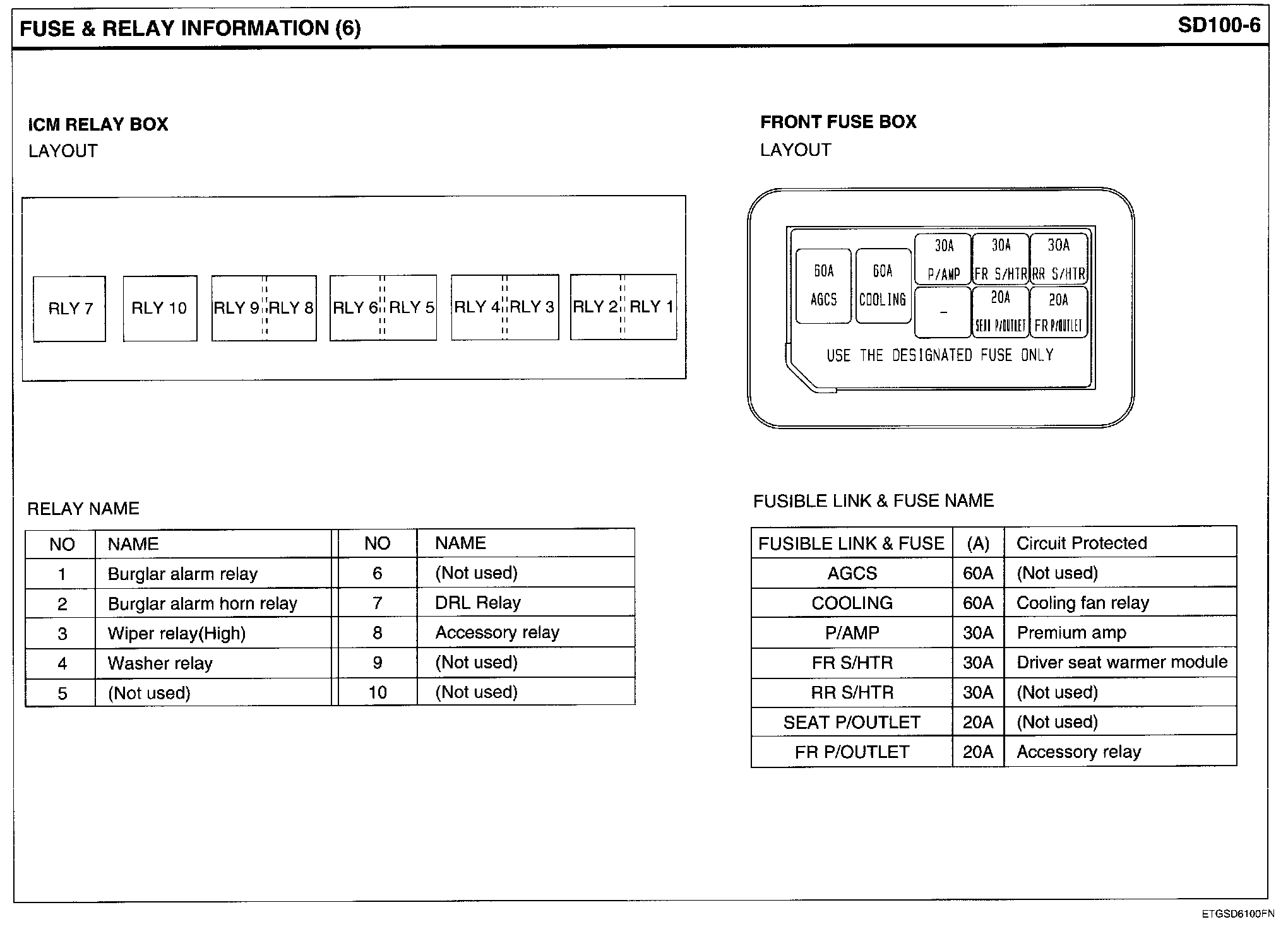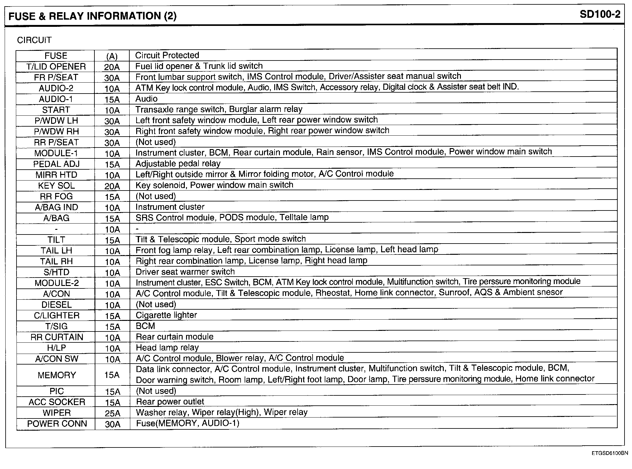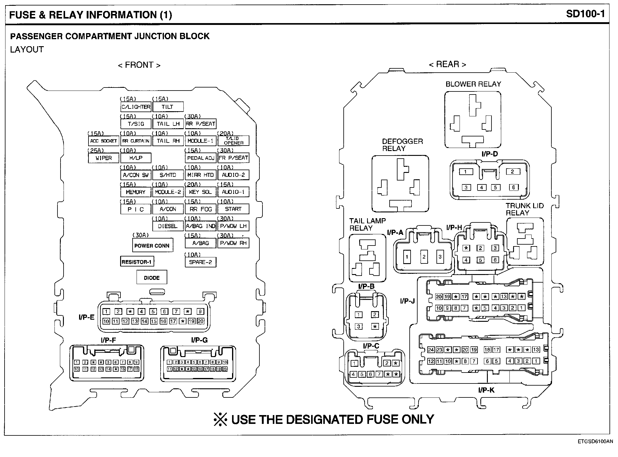 Passenger Compartment Junction Block Circuit Details:
