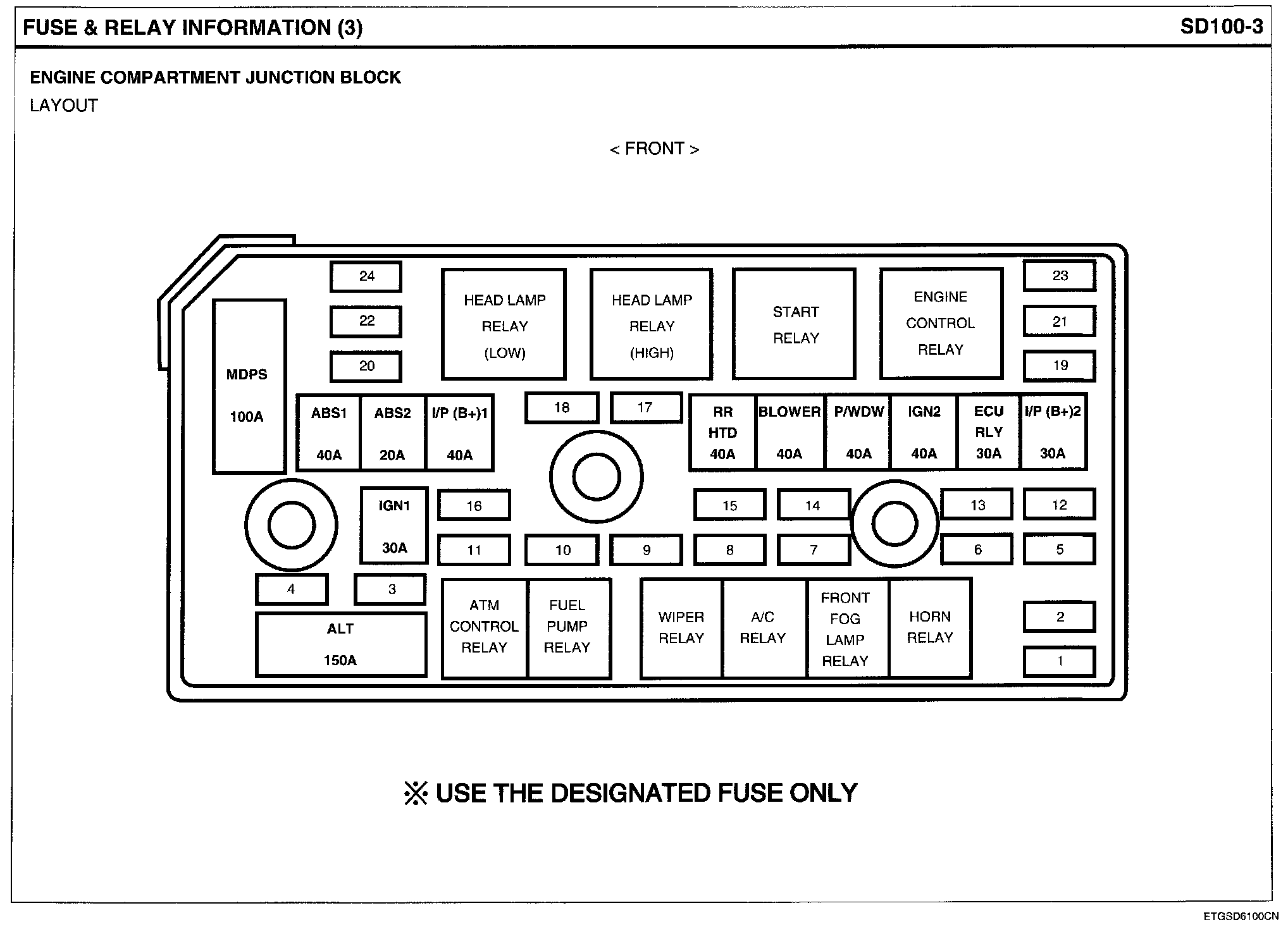 Engine Compartment Junction Block Circuit Details: