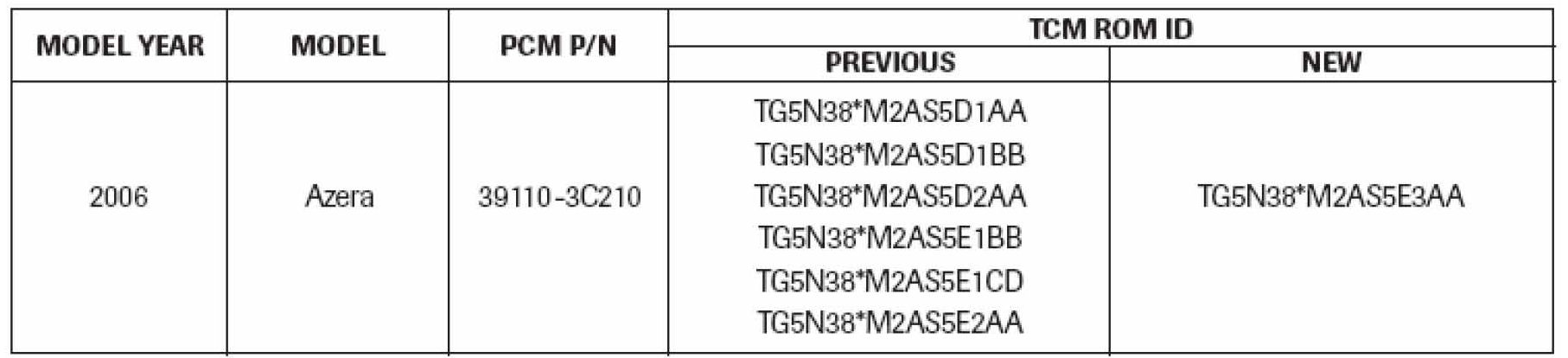 2006 AZERA PCM REPROGRAMMING PROCEDUREFOR COLD WOT 1-2 SHIFT HESITATION