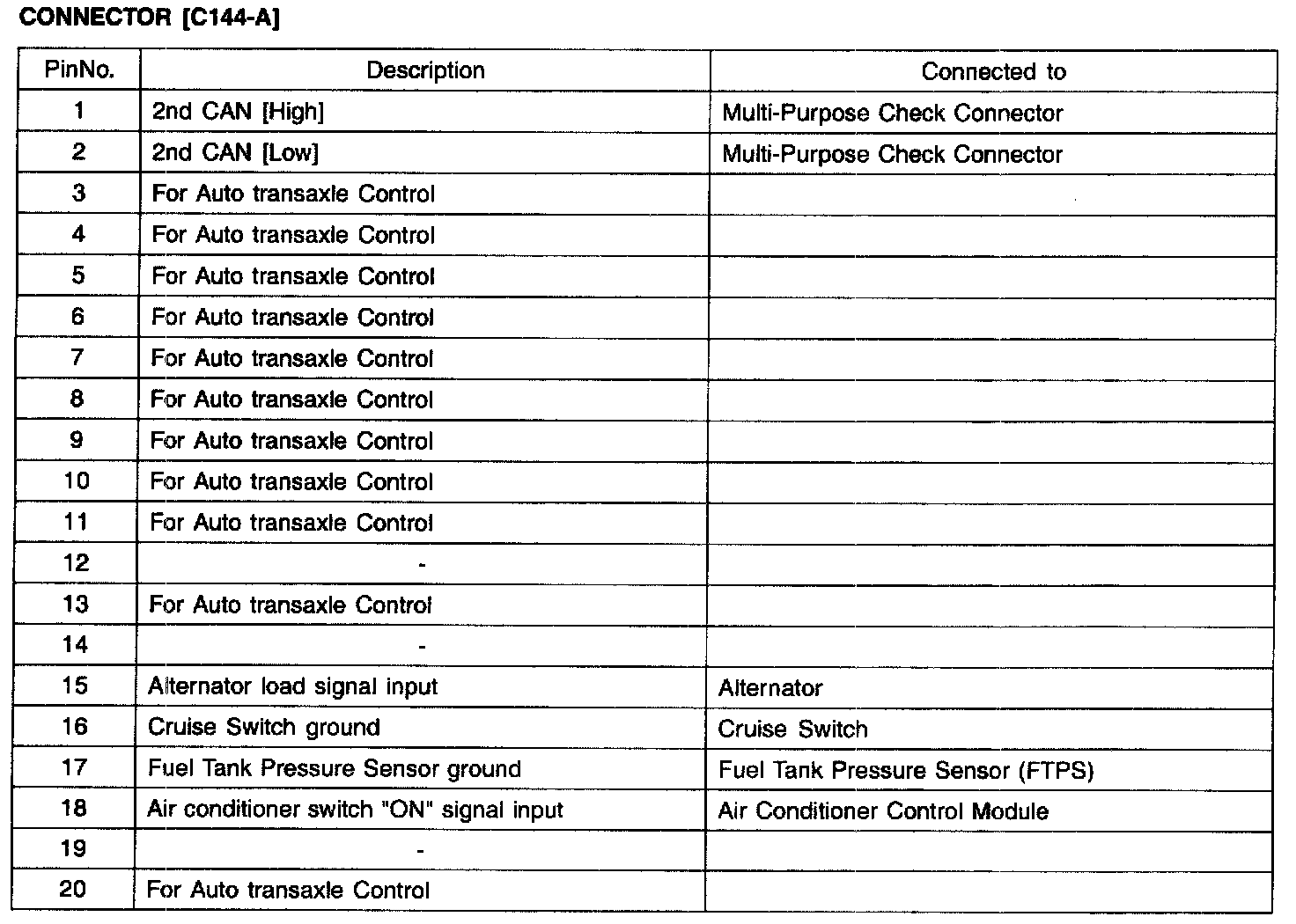 PCM TERMINAL INPUT/OUTPUT SIGNAL - CONNECTOR [C144-A]
