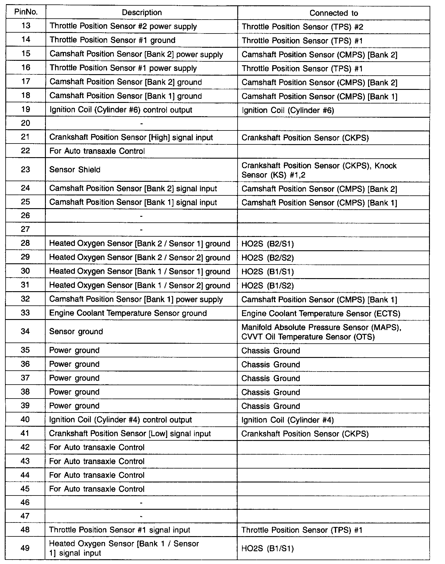 PCM Terminal Function - Connector [C144-B] Part 2: