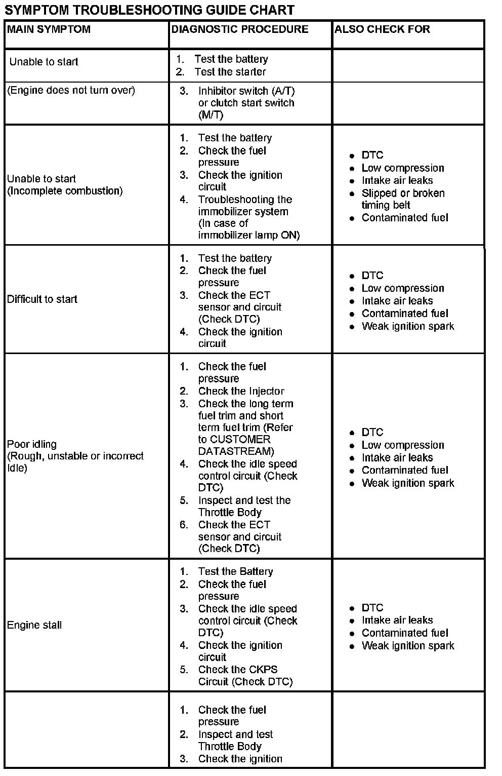 Symptom Troubleshooting Guide Chart Part 1: