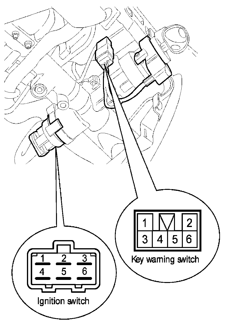 INSPECTION1. Disconnect the ignition switch connector and key warning switch connector from under the steering column.
