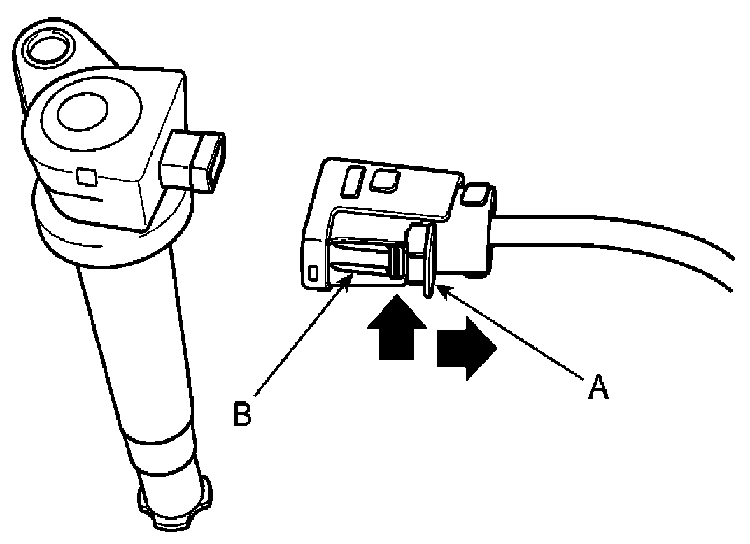 1. Remove the ignition coil connector (A).