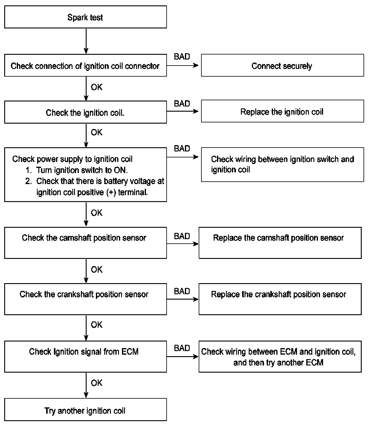 6. Check if spark occurs while engine is being cranked.