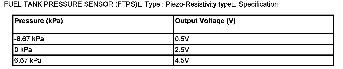 Fuel Tank Pressure Sensor (FTPS) - Specification: