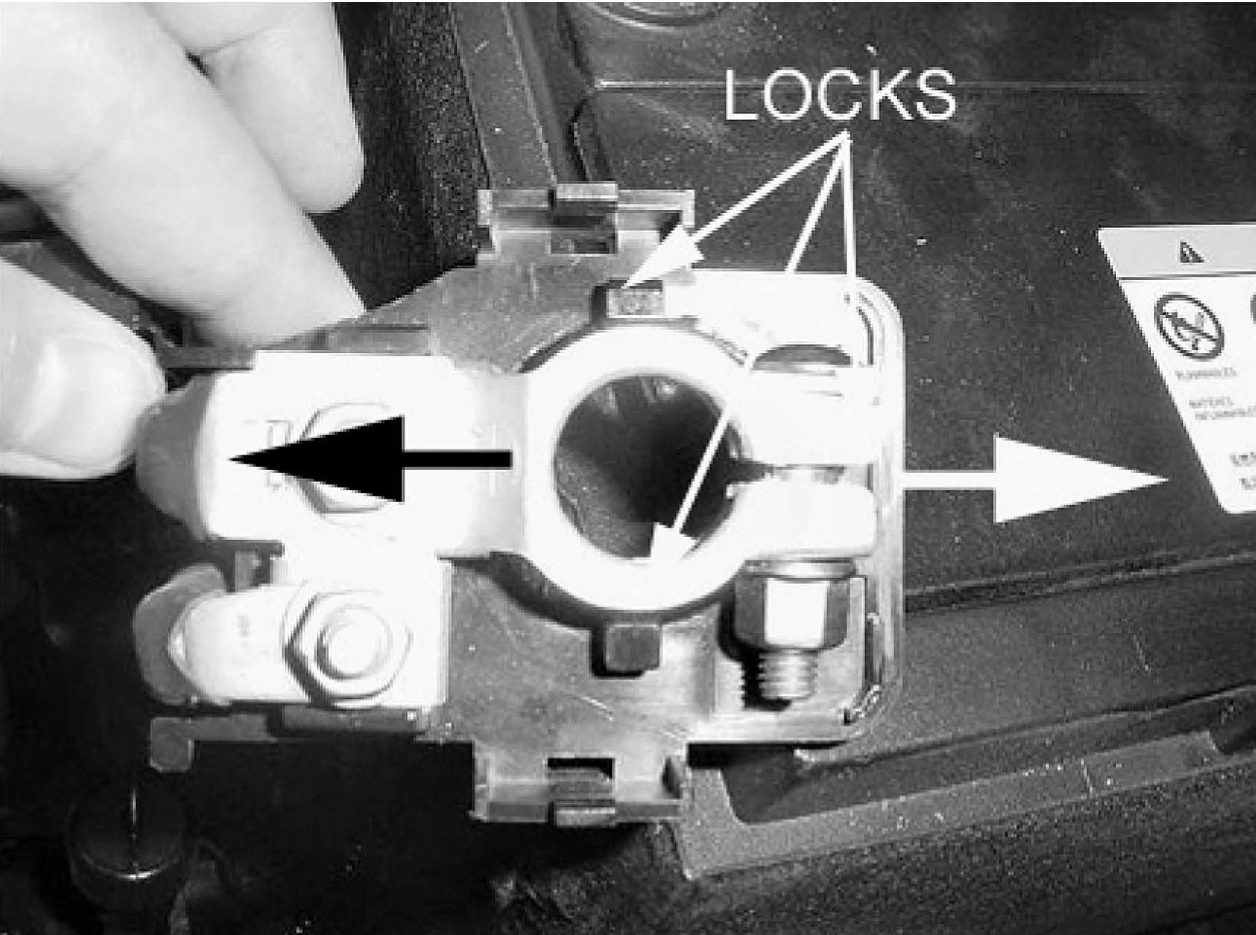 8. Reattach the modified cover to the positive cable terminal as shown. Ensure that each of the three locks are properly engaged.