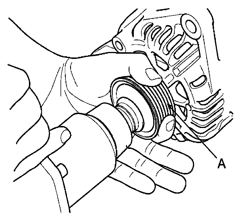 5. Remove the nut, pulley (A) and spacer.