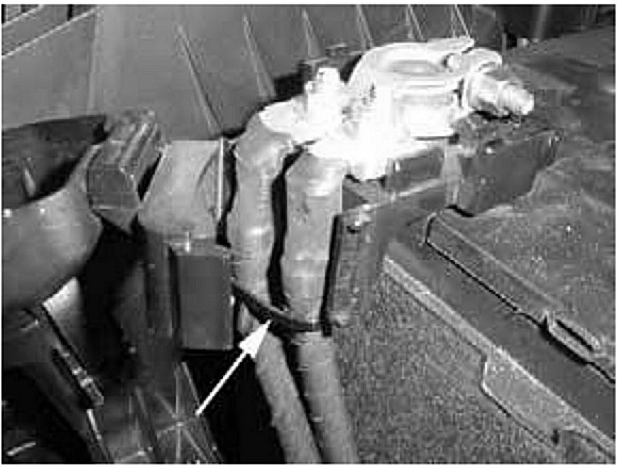 5. Remove and discard the wire-tie holding the positive battery cables to the cable stay.