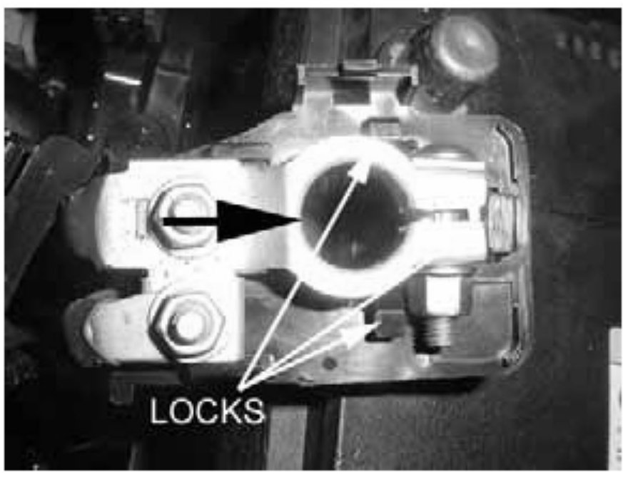 8. Re-attach the modified cover to the positive cable terminal as shown. Ensure that each of the three locks are properly engaged.