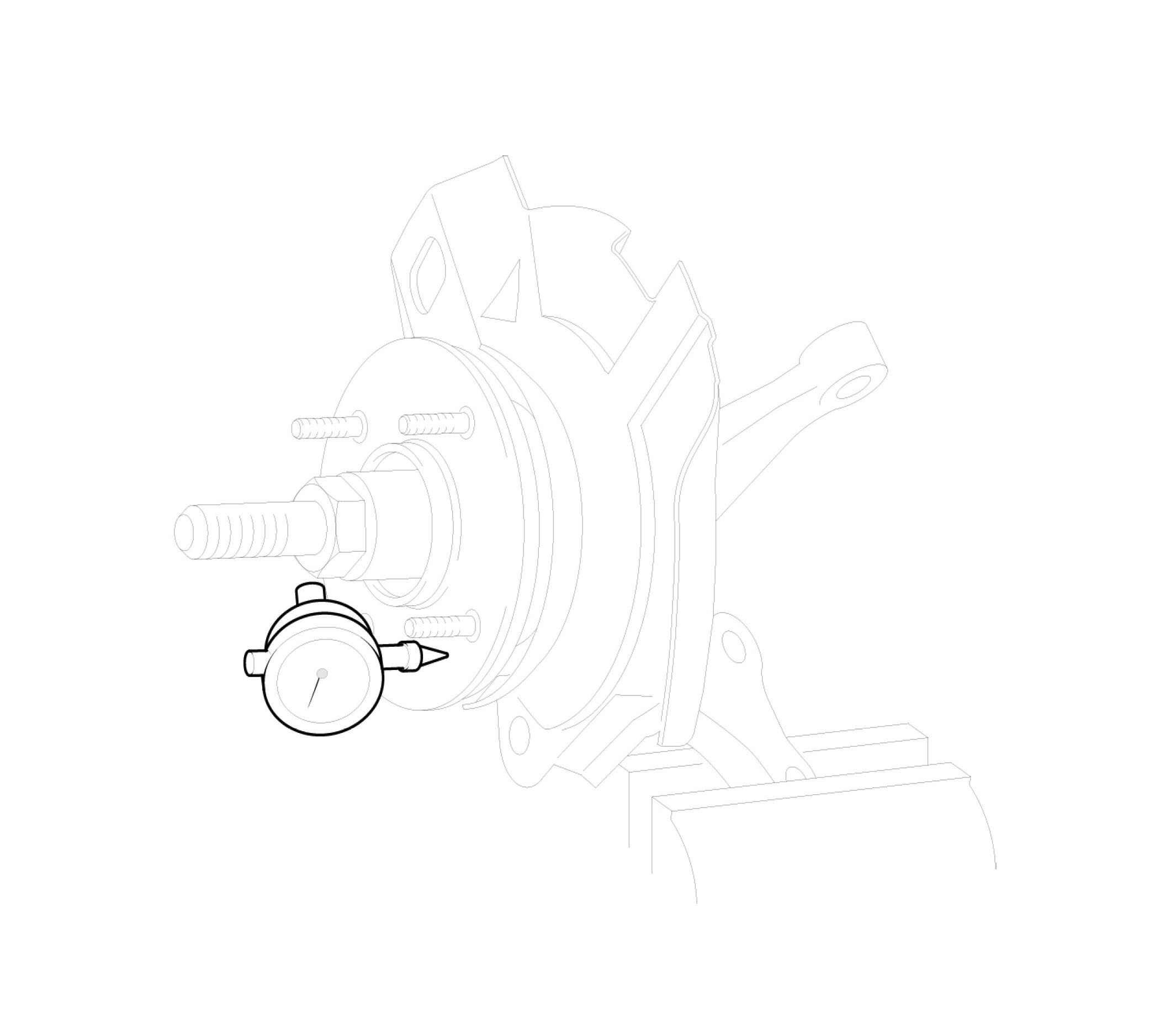 8. Fix a dial gauge and measure the hub end play. Check that it is within the standard value.