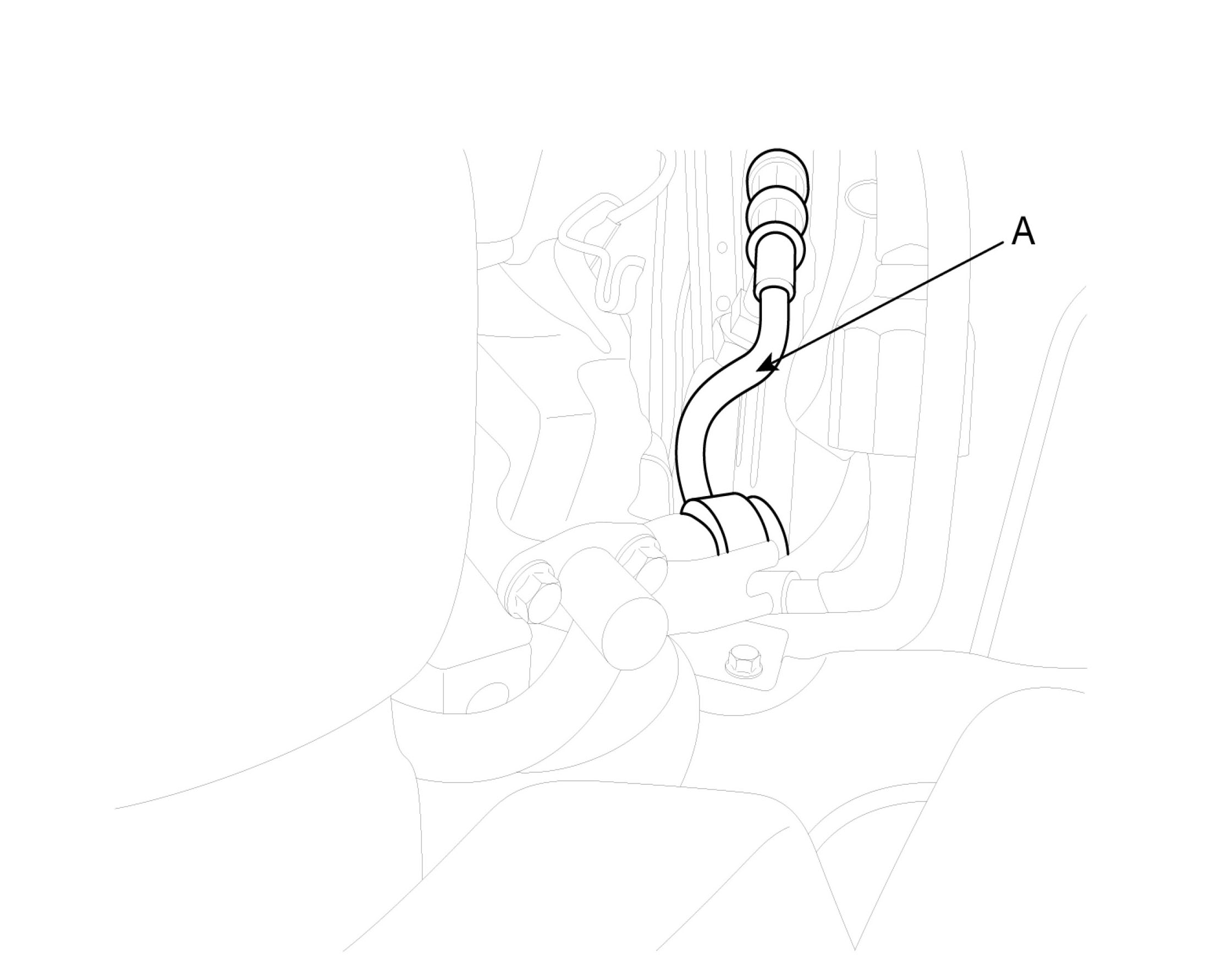 4. Remove the pressure hose (A) from the oil pump and the suction hose (B) from the suction pipe, then drain the power steering oil.