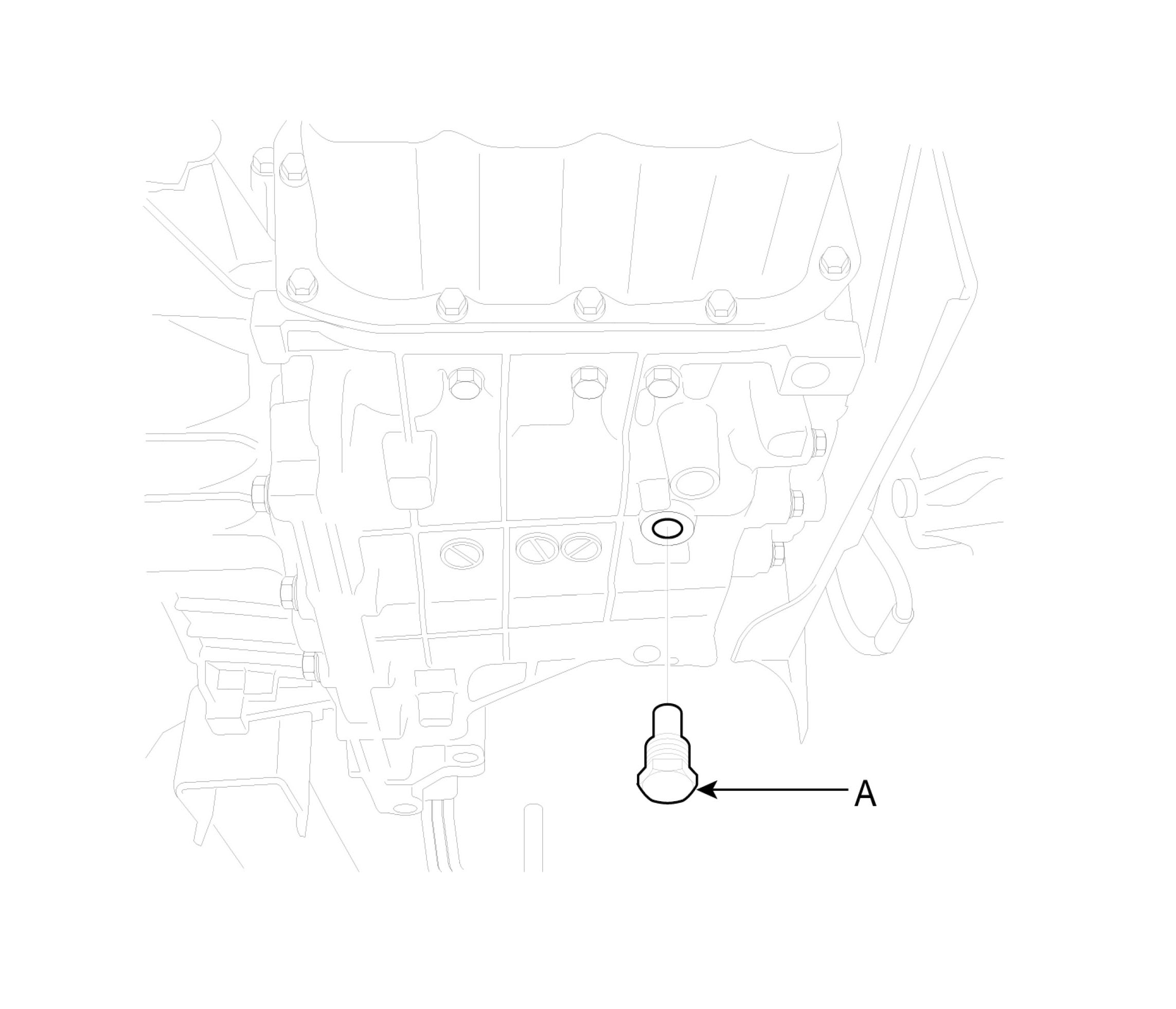 3. Remove the drain plug (A) from the bottom of the transmission case to drain the fluid.