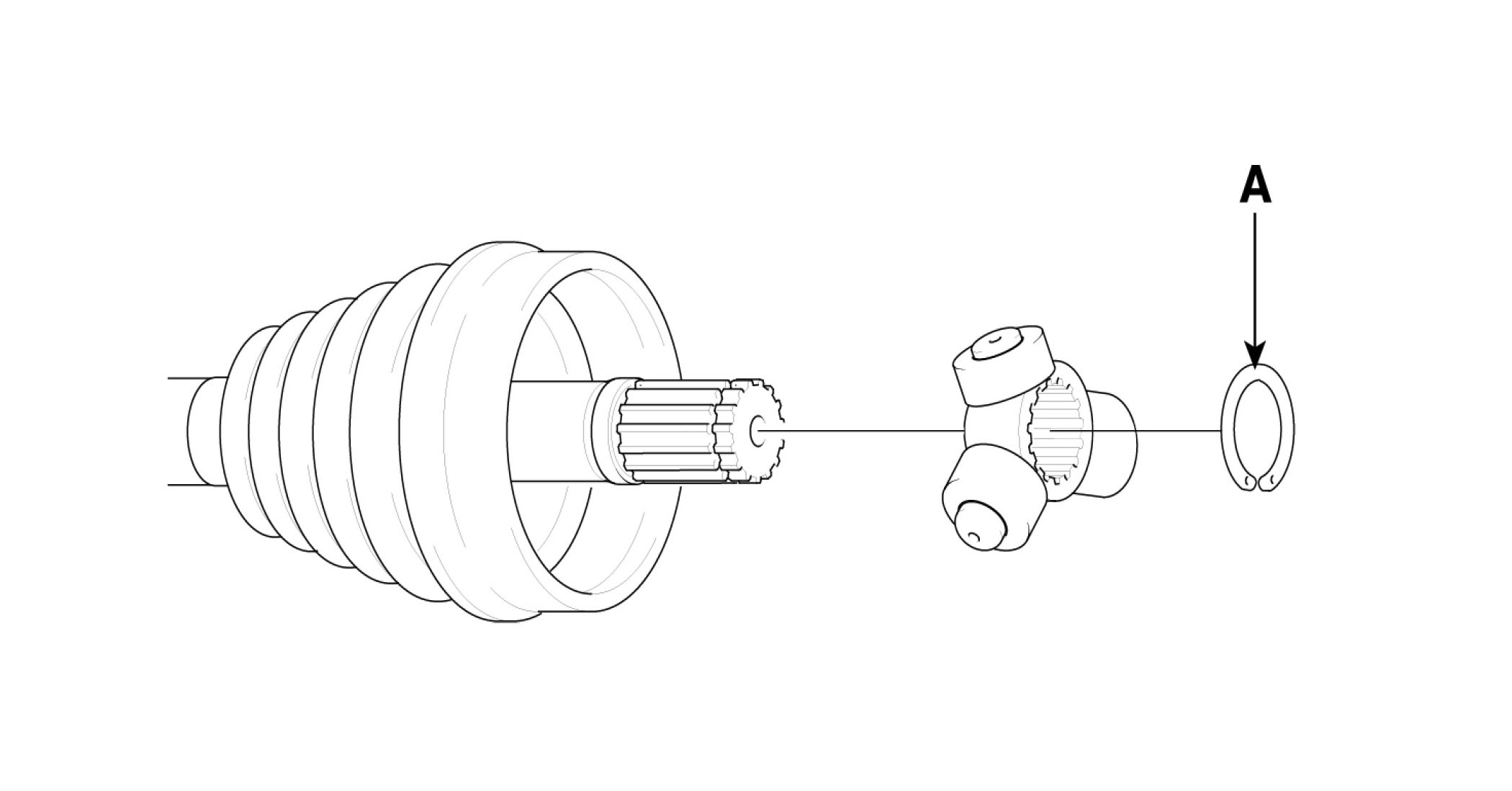 8. Remove the boot (A), of the transaxle side joint (PTJ).