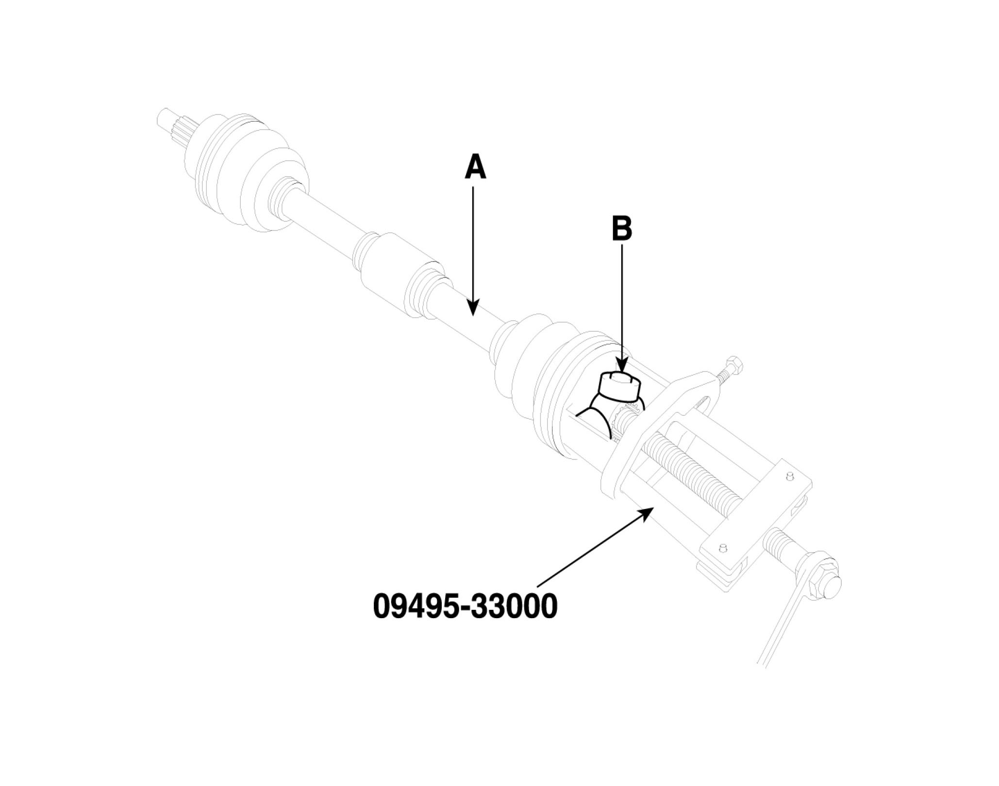 6. Remove the spider assembly (B) from drive shaft (A) by using the Special Tool (09495-33000).