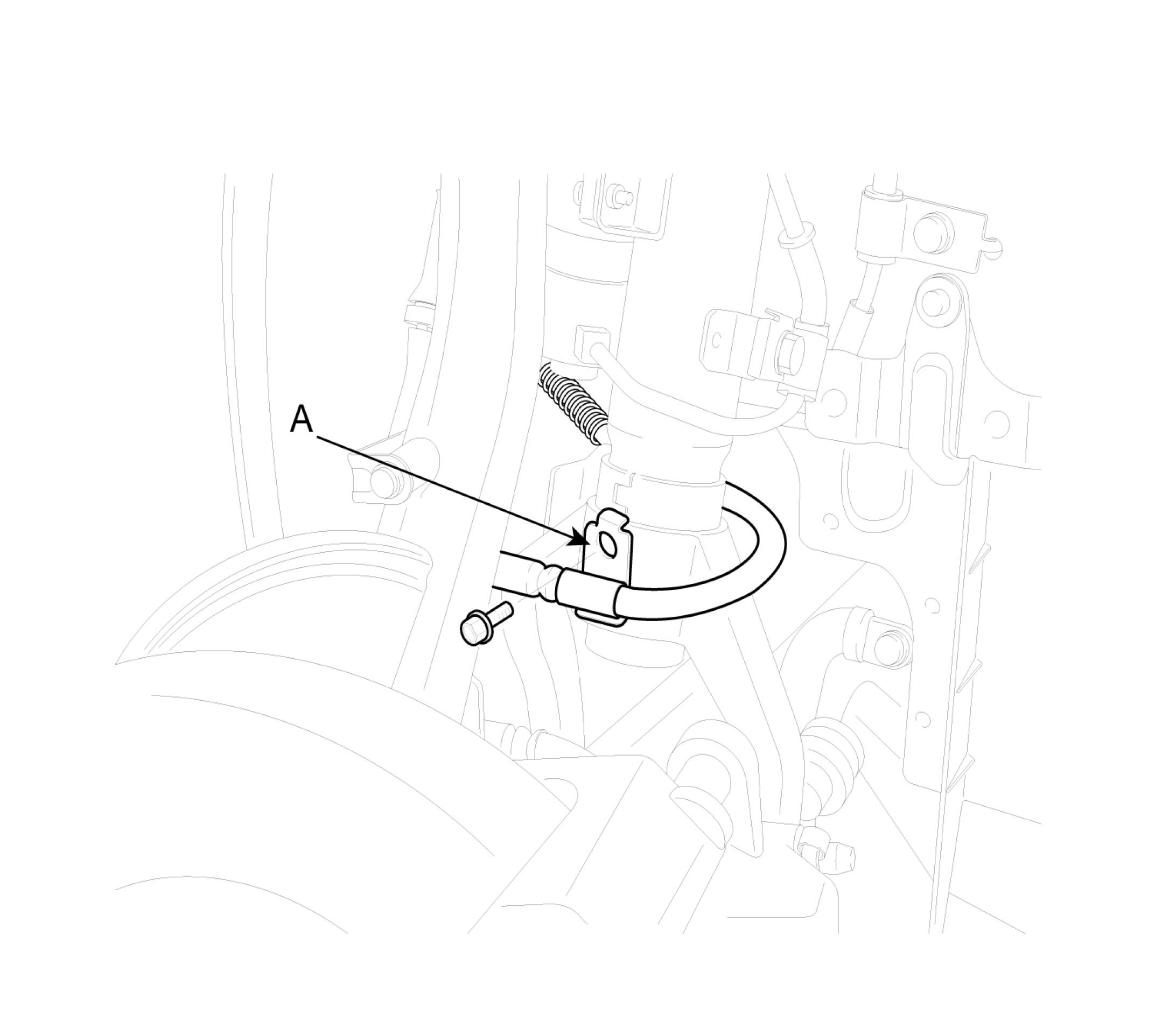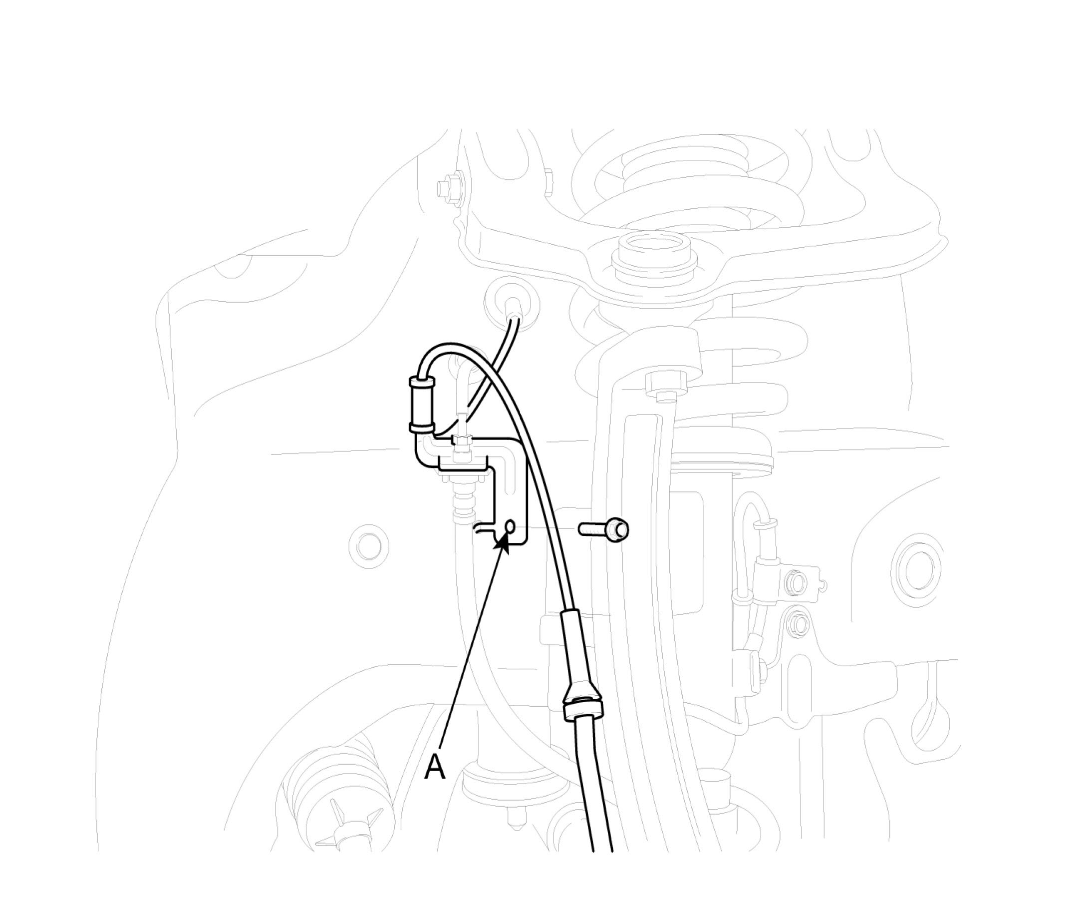 3. Disconnect the brake hose bracket (A) from the knuckle.