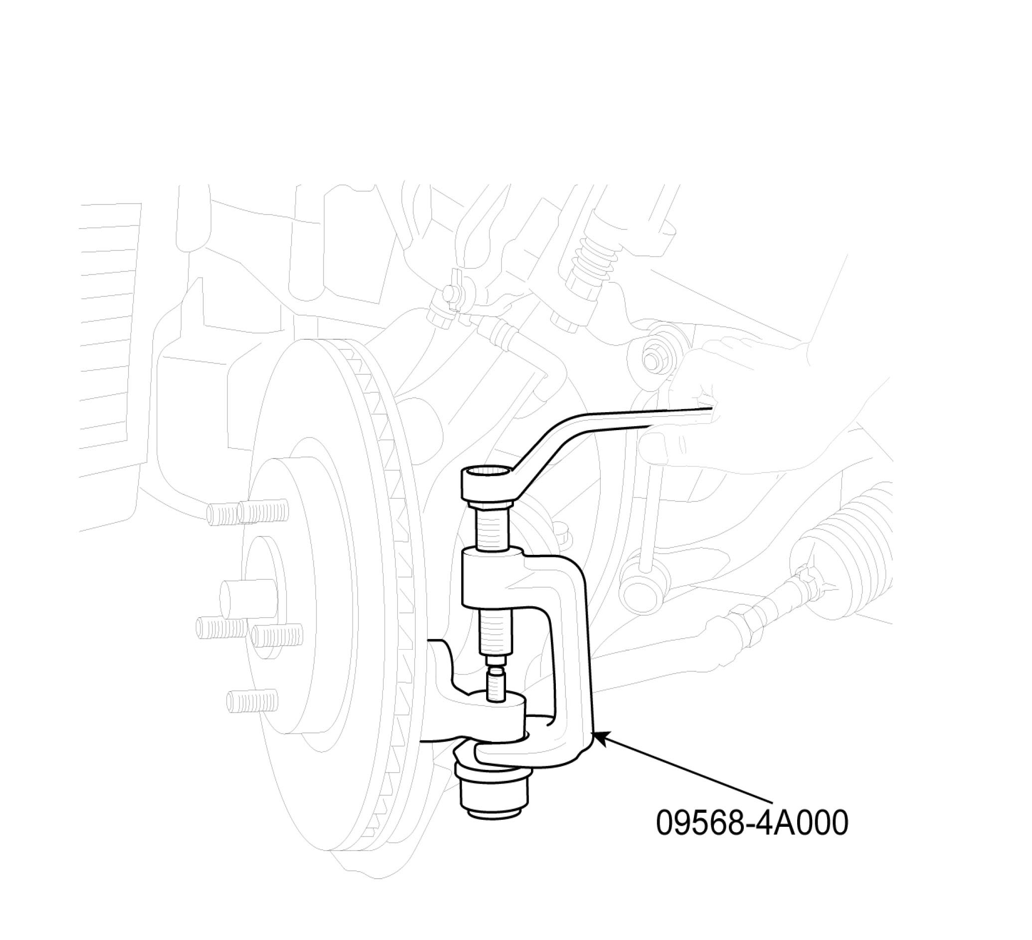 7. Using the special tool (09568-4A000), disconnect the tie rod end from the knuckle.