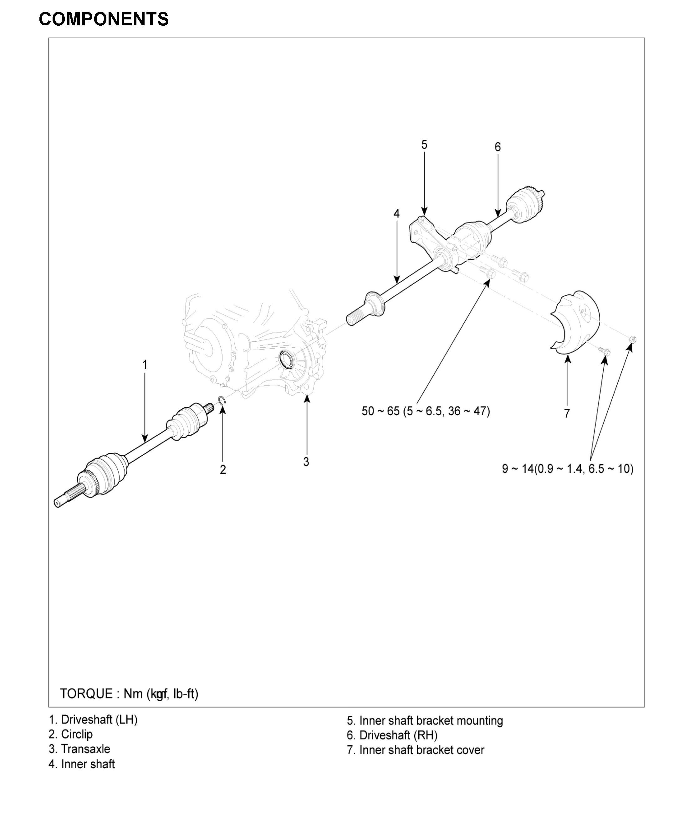 Tightening Torque Nm (kgf�m, lb-ft): 50 - 65 (5 - 6.5, 36 - 47)