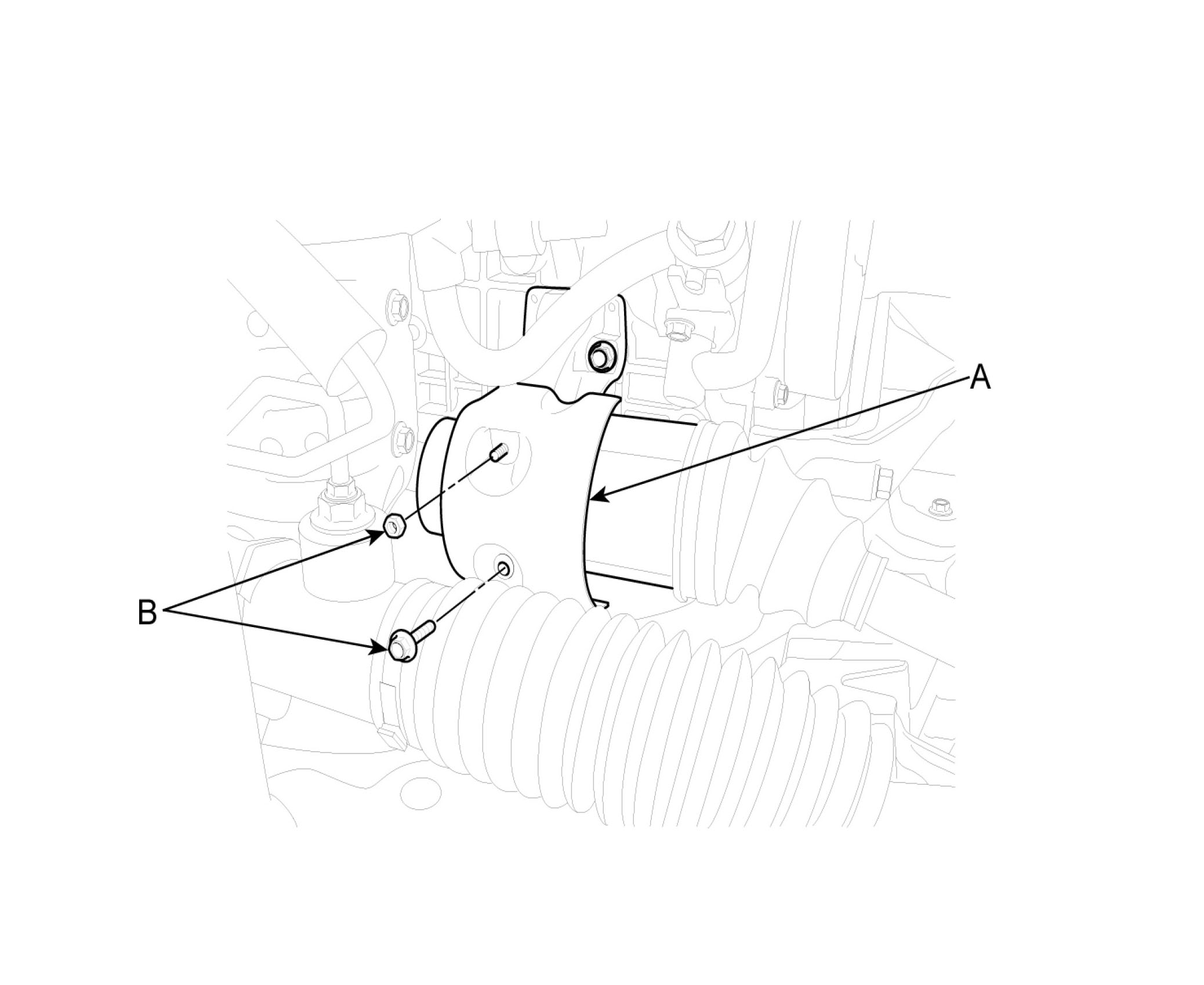 ^ Install the inner shaft cover (A) by installing the cover mounting bolts (B).