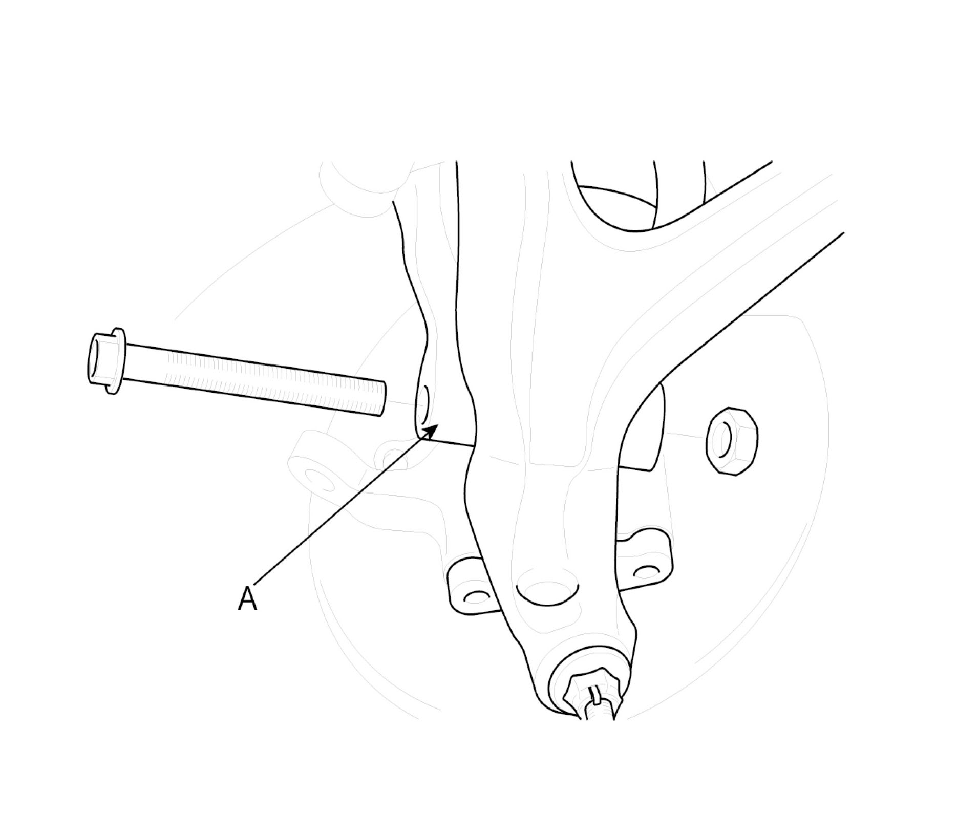 ^ Install the connecting bolt between the fork (A) and the lower arm.