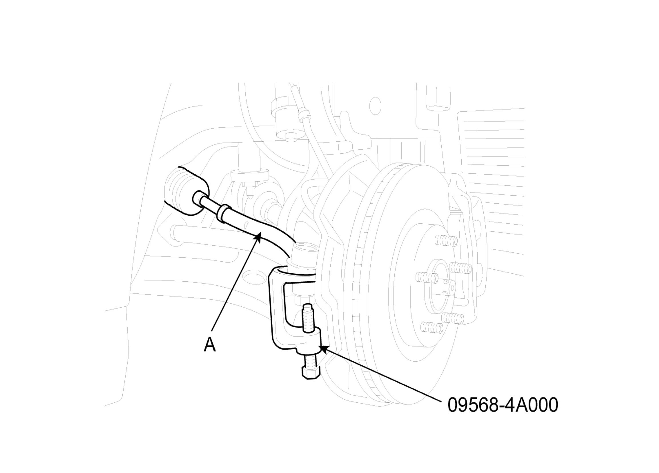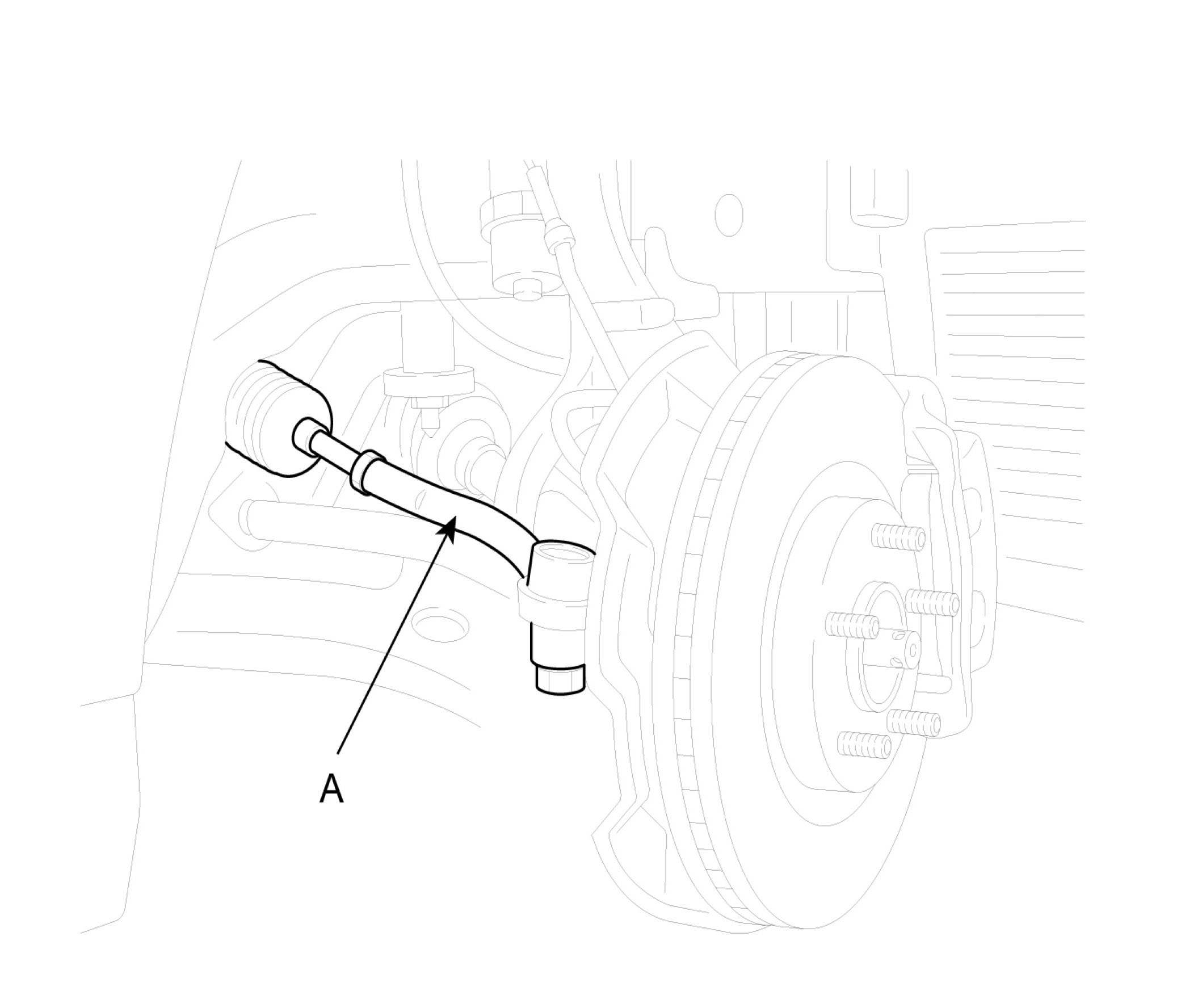 3. Using the special tool (09568-4A000), disconnect the tie rod end (A) from the knuckle.