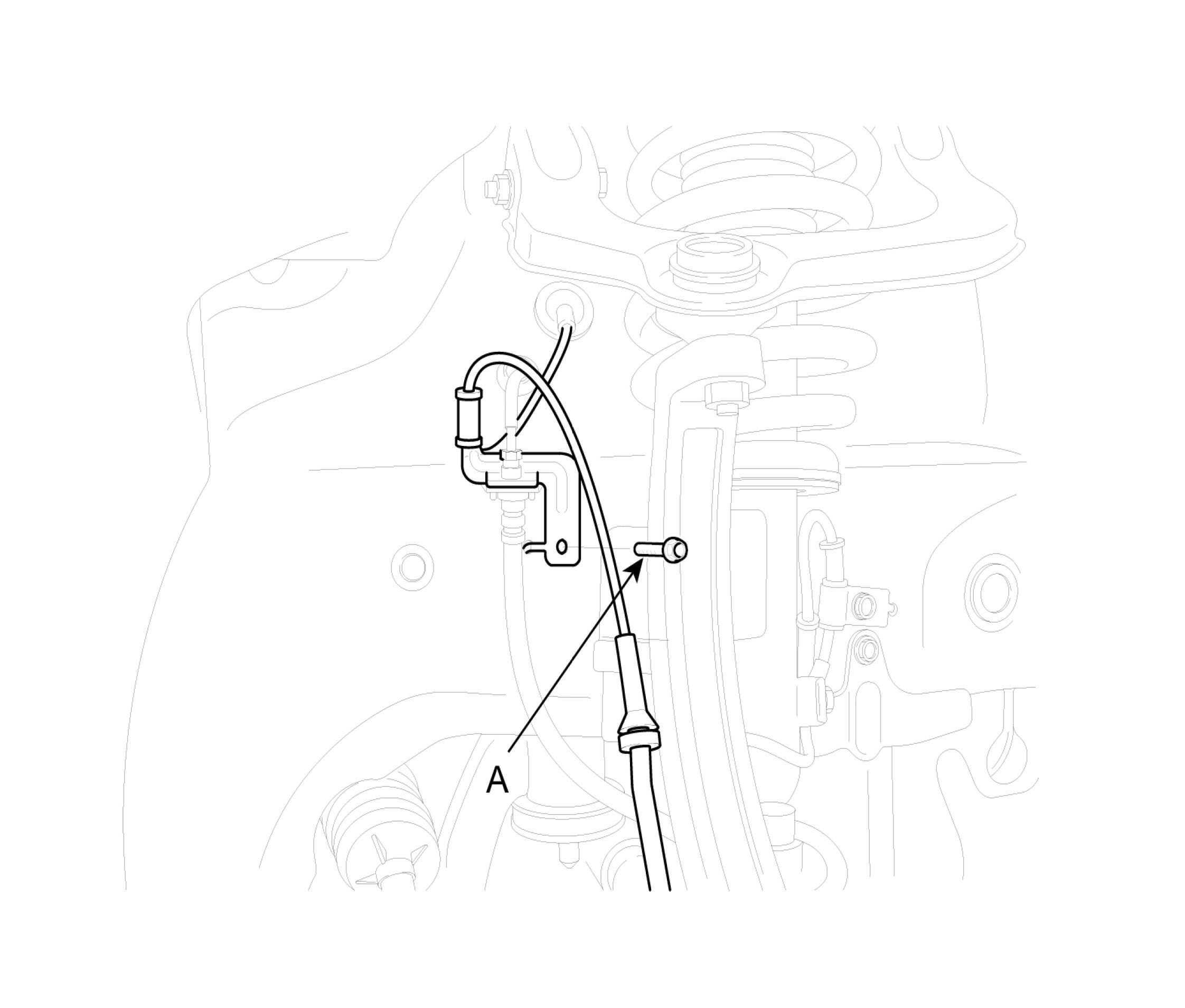6. Disconnect the wheel speed sensor bracket (A) from the knuckle.