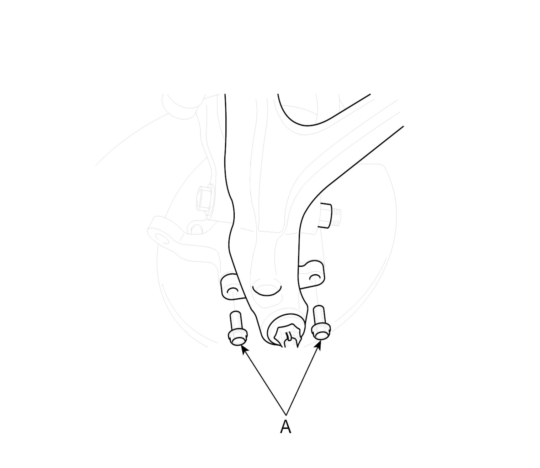 5. Disconnect the brake hose bracket (A) from the knuckle.