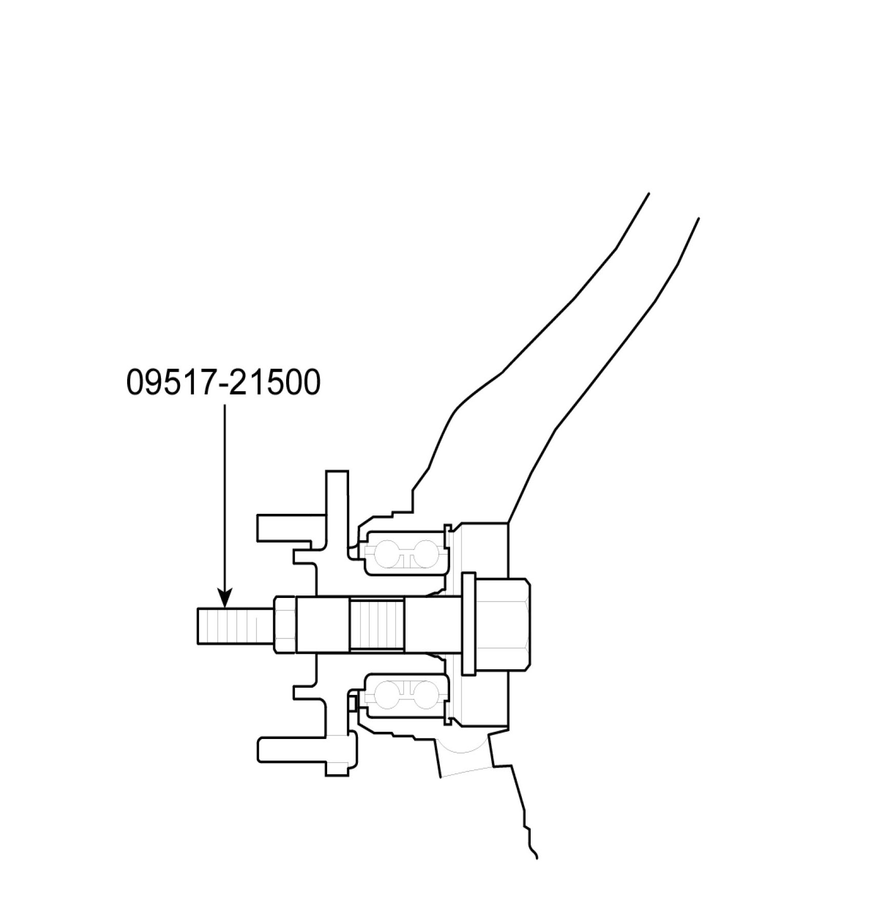 ^ While loosening the driveshaft nut, do not allow vehicle weight to be concentrated on the wheel bearing. If the vehicle moves, hold the wheel bearing using the special tool.