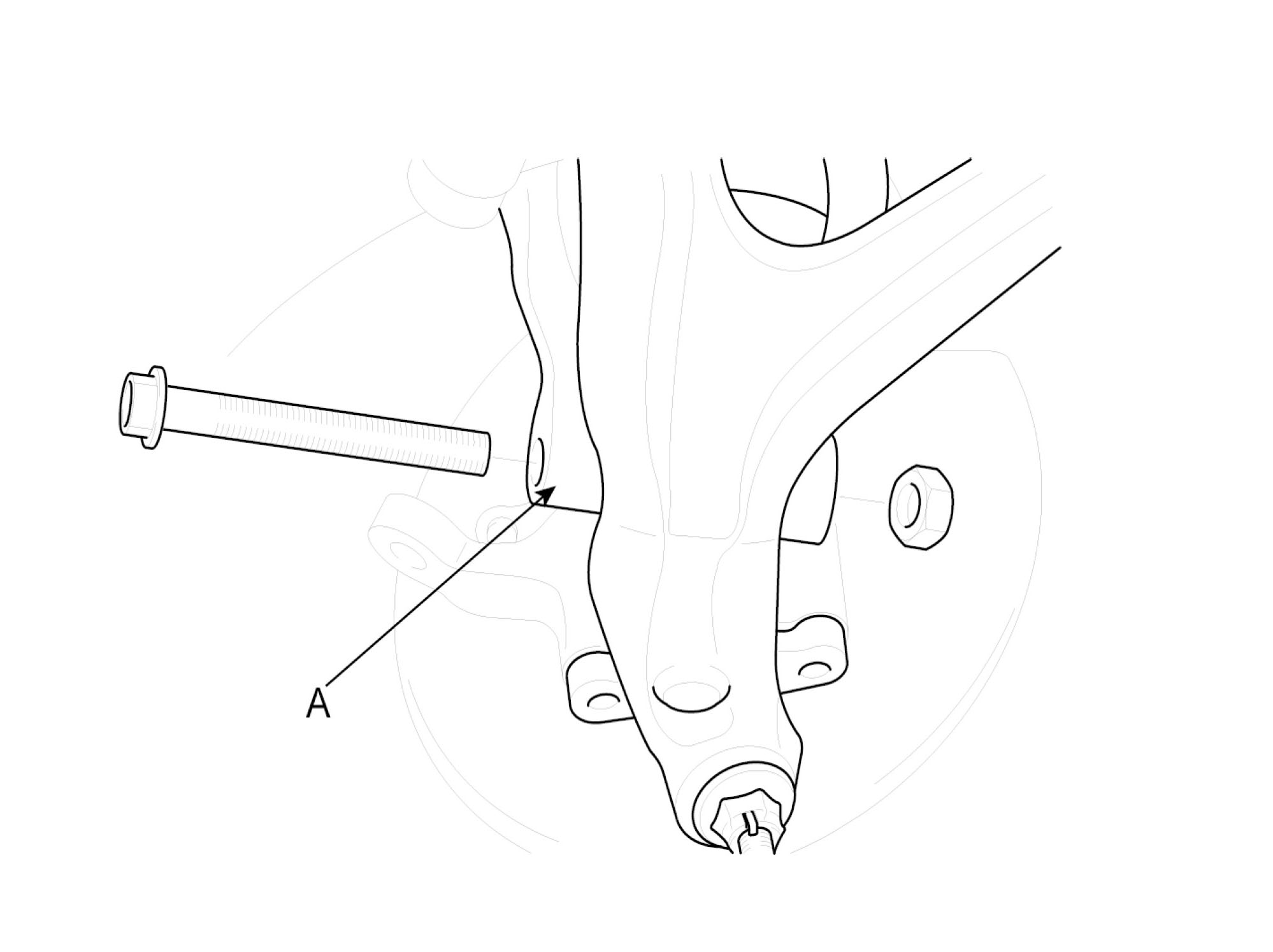 4. Install the knuckle in the lower arm assembly and tighten the bolts (A).