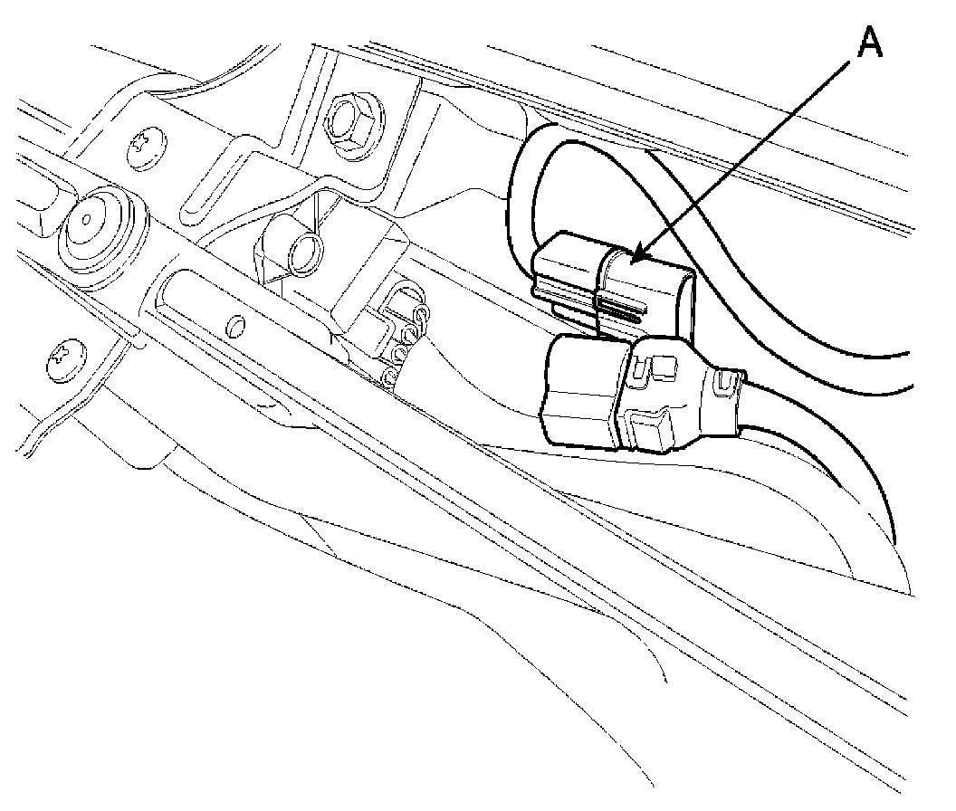 2. Disconnect the windshield deicer connector (A) from the wiper motor linkage.