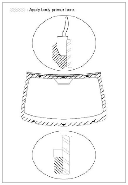 - Never touch the primed surface with your hand. If you do, the adhesive may not bond to the glass Properly, causing a leak after the windshield glass is installed.