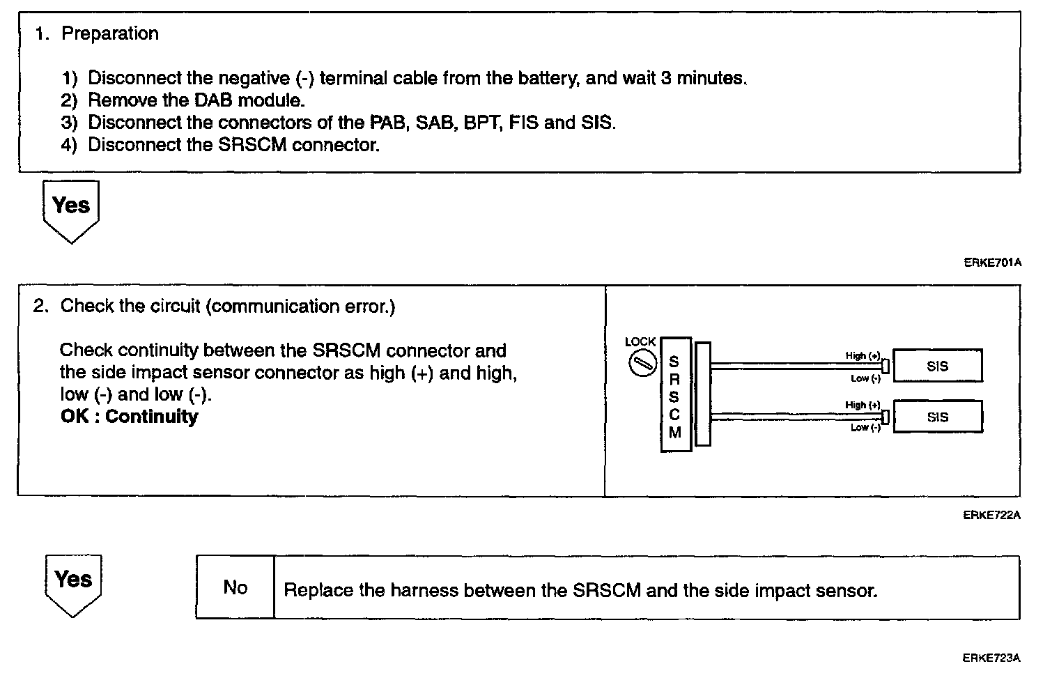The release system for the airbag consists of the SRSCM and two side impact sensors-one on the left-hand side and one on the right. The above DTCs are recorded when a defect or communication error of the side impact sensor is detected in the side impact sensor circuit.