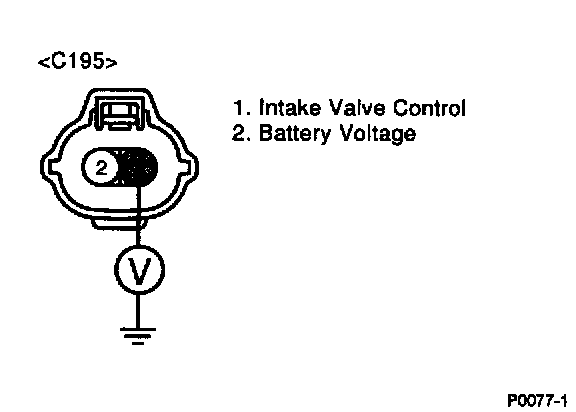 4. Measure voltage between terminals 1 of the intake valve control solenoid connector and chassis ground.