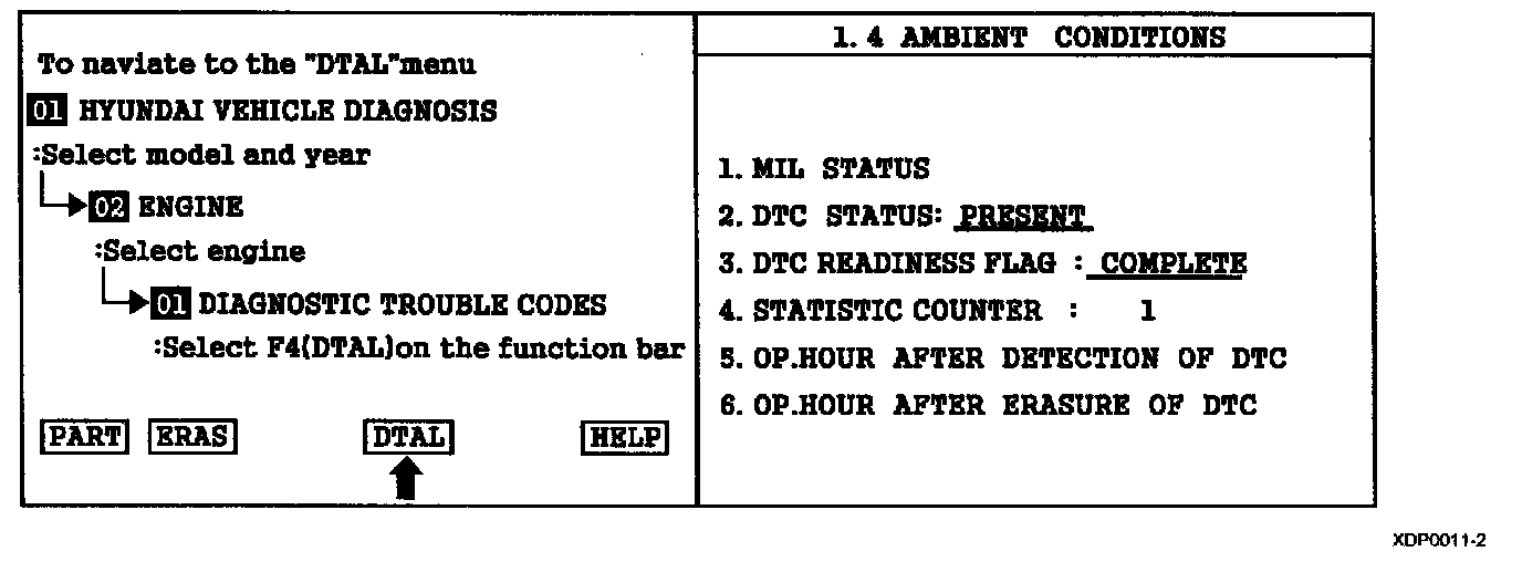 2. Press F4(DTAL) to select DTC information from the DTCs menu.