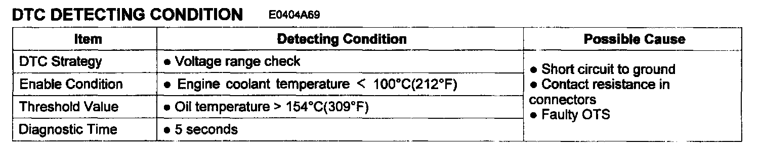 PCM sets DTC P0197. if the PCM detects signal voltage lower than the possible range of a properly operating OTS.