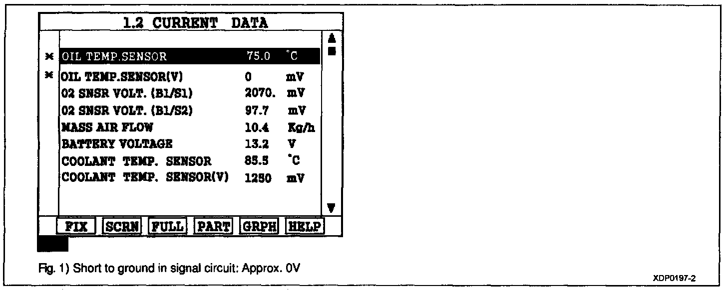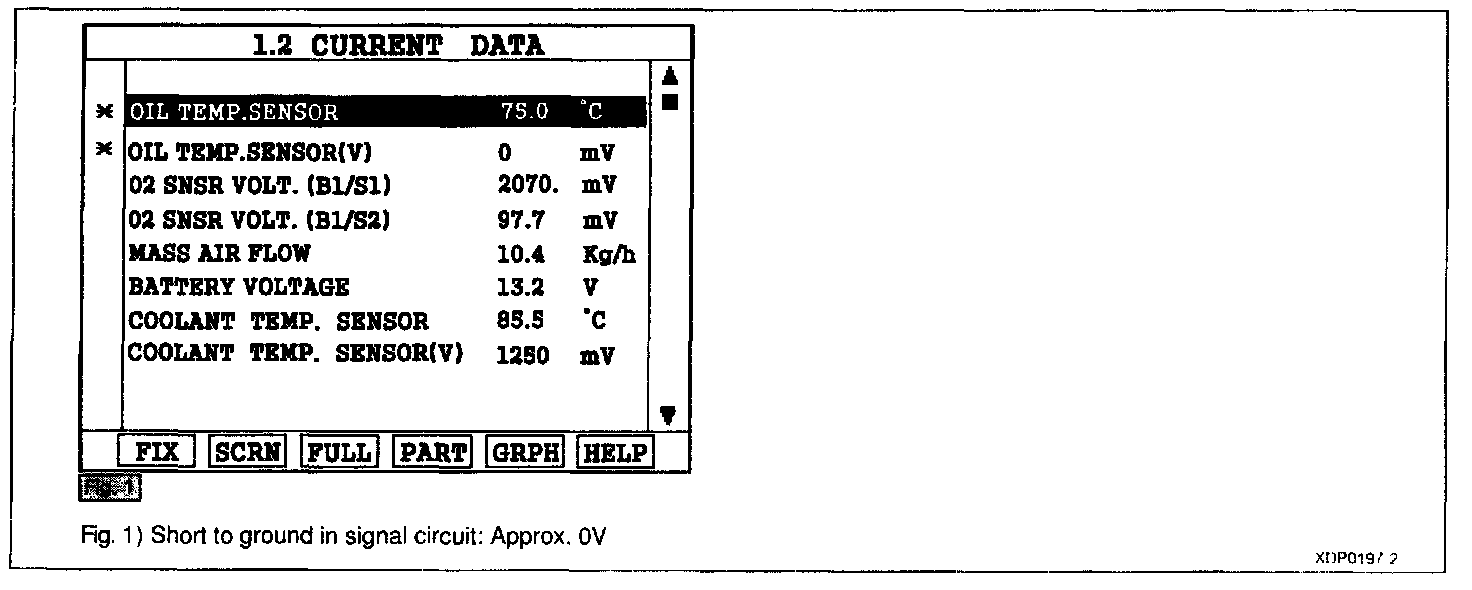 3. Connect Scantool and monitor the "OIL TEMP. SENSOR(V)" parameter on the Scantool data list.