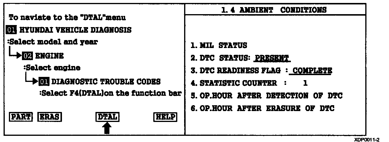 2. Press F4(DTAL) to select DTC information from the DTCs menu.