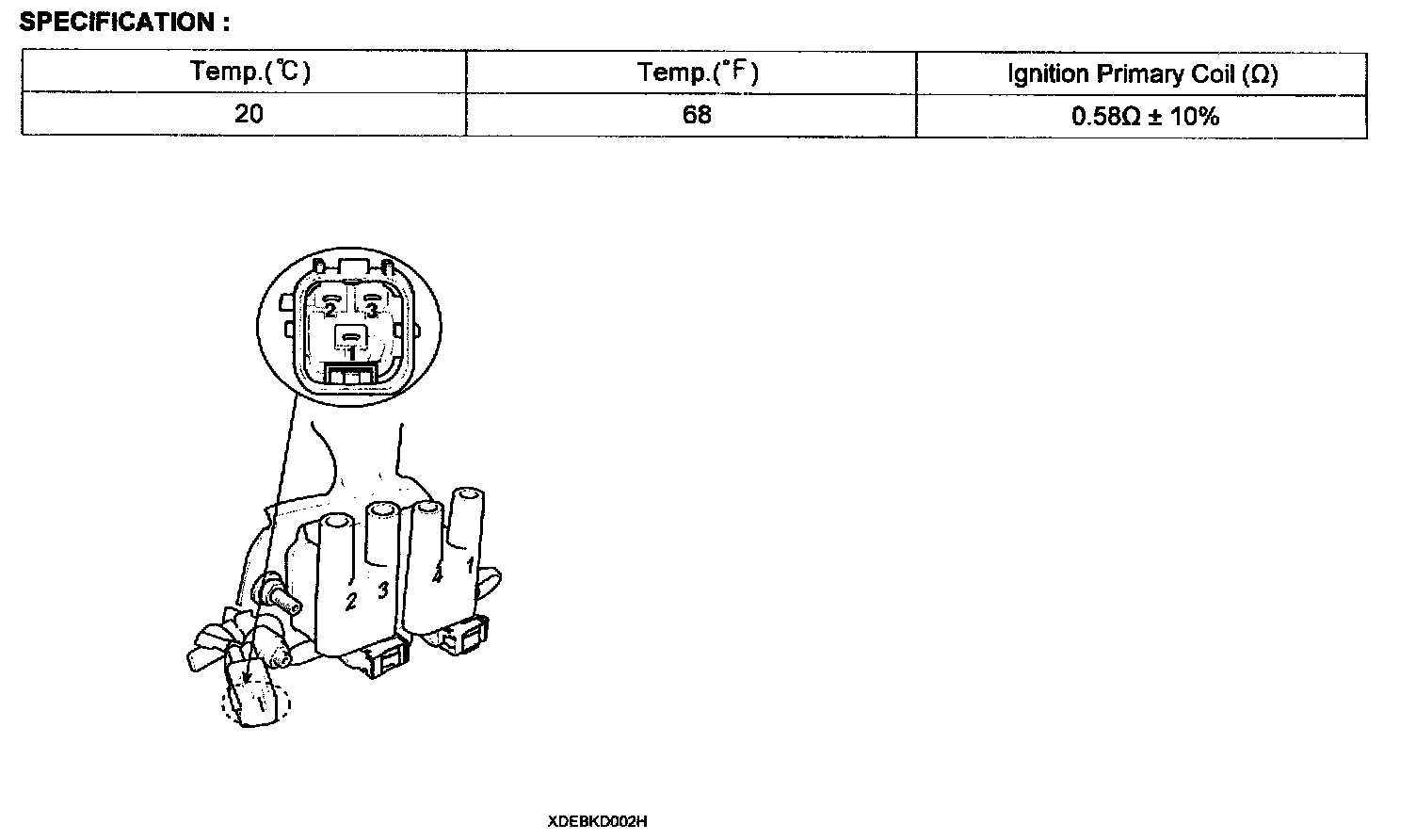 4. Measure the primary coil resistance between terminals 2 and 3
