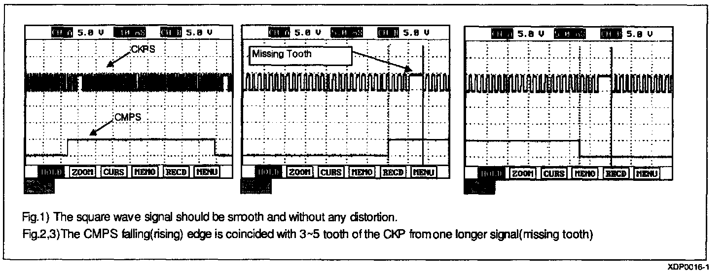 7. Start the engine and check for signal waveform whether synchronize with camshaft sensor or not and tooth is missing refer to sample waveforms as above.
