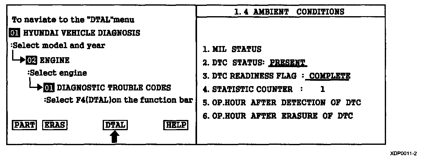2. Press F4(DTAL) to select DTC information from the DTCs menu.