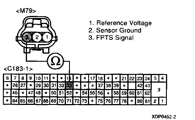 1. Measure resistance between terminal 3 of the FTPS harness connector and chassis ground