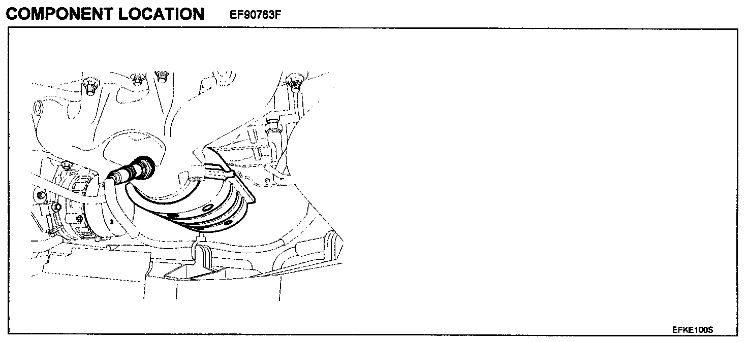 The linear O2 sensor is mounted on the front side of the Catalytic Converter (warm-up catalytic converter) or in the front exhaust pipe. It detects a wide range of air/fuel ratios in the exhaust gas from the rich to lean regions. This linear O2 sensor produces a current that corresponds to a specific air/fuel ratio. The PCM monitors this signal and determines whether the air/fuel mixture is rich or lean The PCM constantly monitors the linear O2 sensor and increases or decreases the fuel injection duration using this signal. This is called closed-loop fuel control operation.