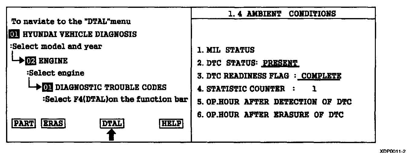 2. Press F4(DTAL) to select DTC information from the DTCs menu