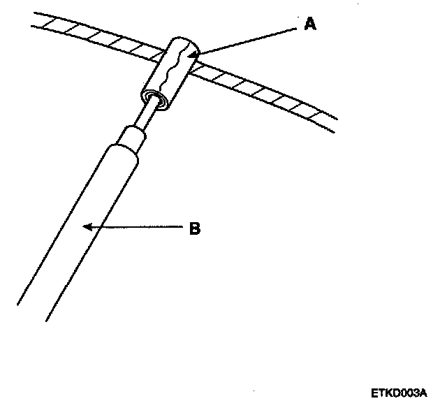 GLASS ANTENNA TEST1. Wrap aluminum foil (A) around the tip of the tester probe (B) as shown.