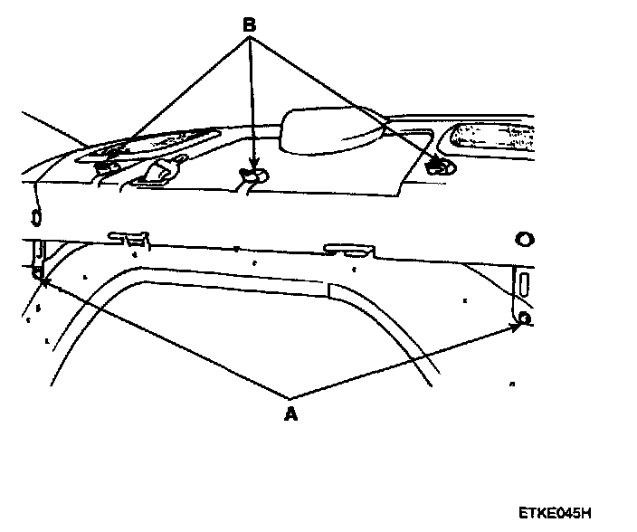3. Remove the bolts (A) and plugs (B) from the rear package tray trim.