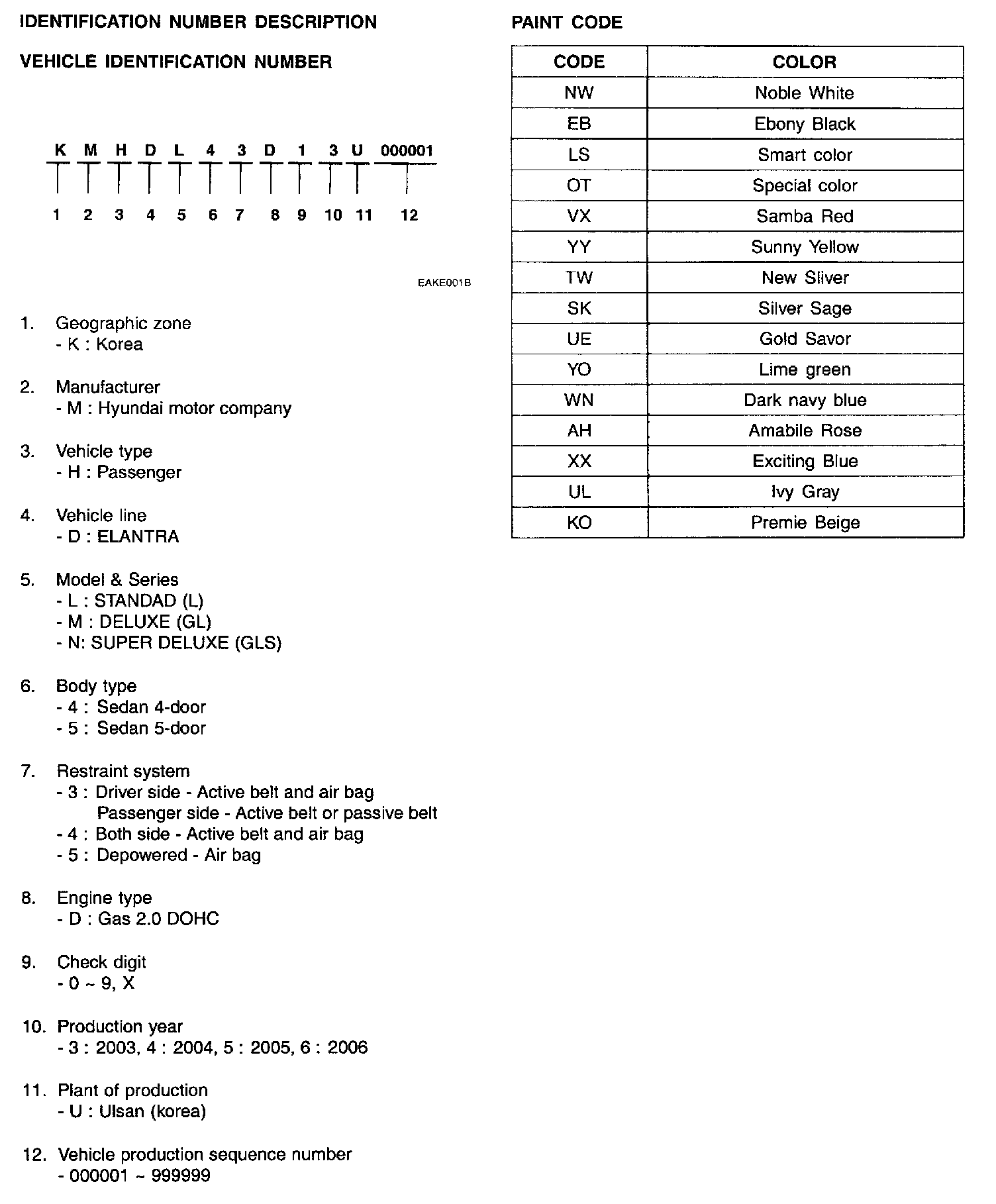 Vehicle Identification Number Description