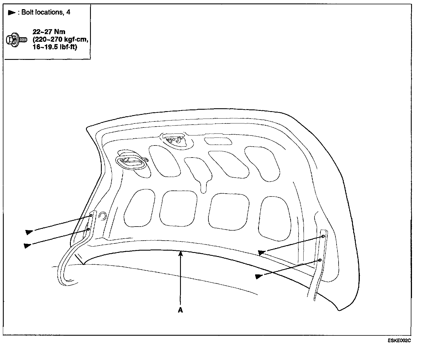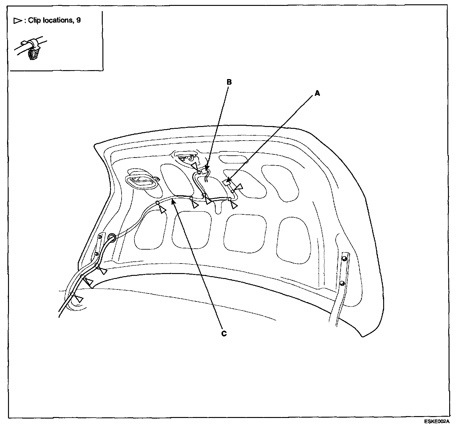 1. Disconnect the key cylinder connector (A) and license lamp connector (B).