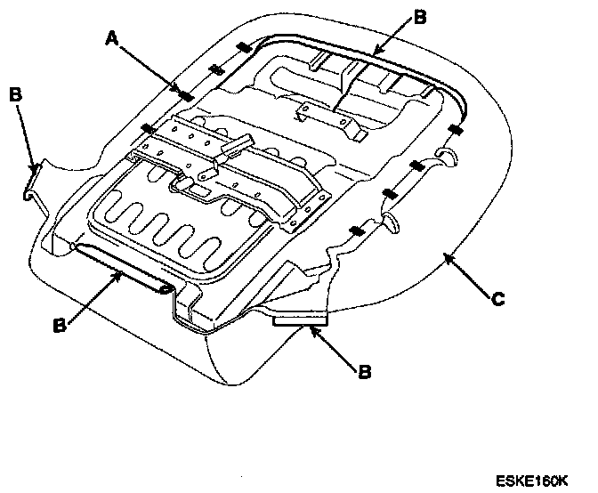 3. Release the clips (A) and hooks (B) from under the seat cushion, then loosen the seat cushion cover (C).