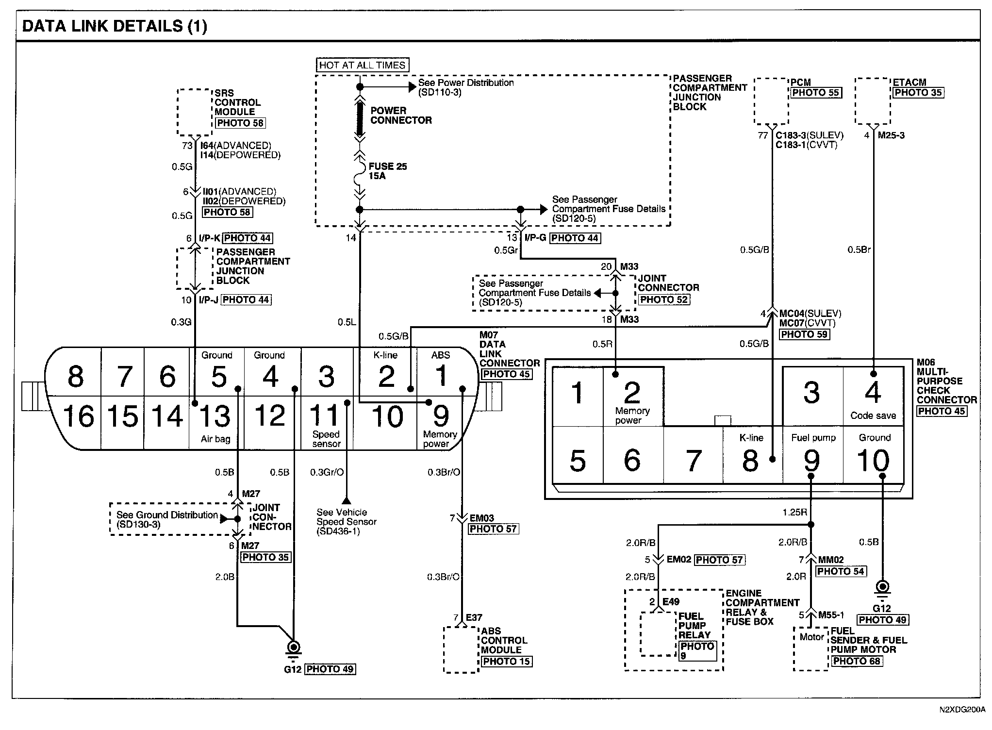 Locations: Location photographs (references to PHOTOS) referred to within these diagrams can be found via the photo number at the vehicle level under Locations by Photo Number. Component Locations