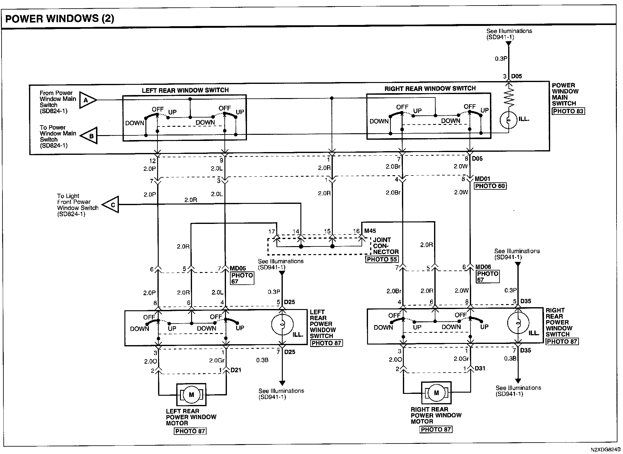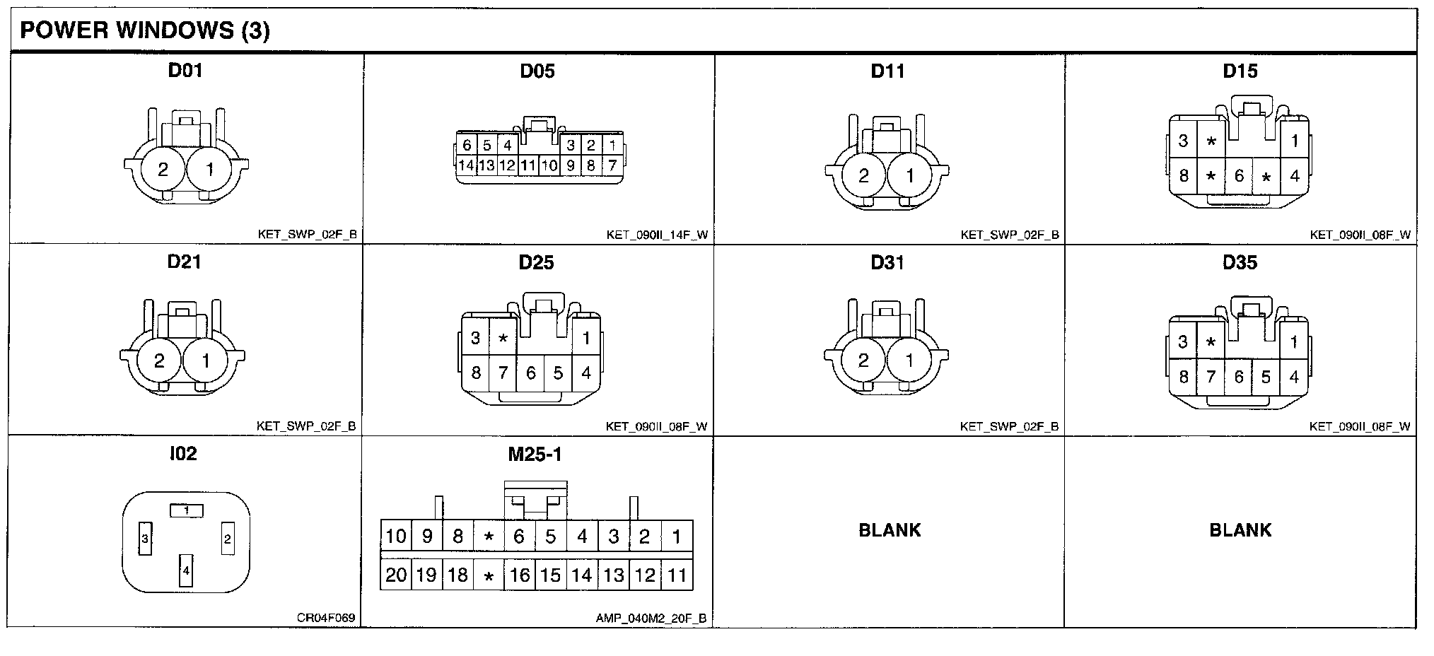 Power Windows Connector Pin Outs: